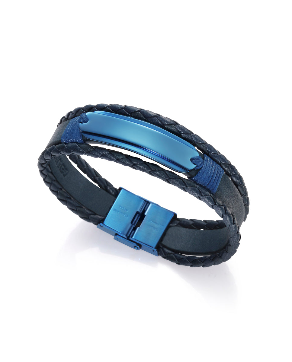 Air-Herrenarmband mit blauer IP-Stahlplatte und geflochtenem Leder