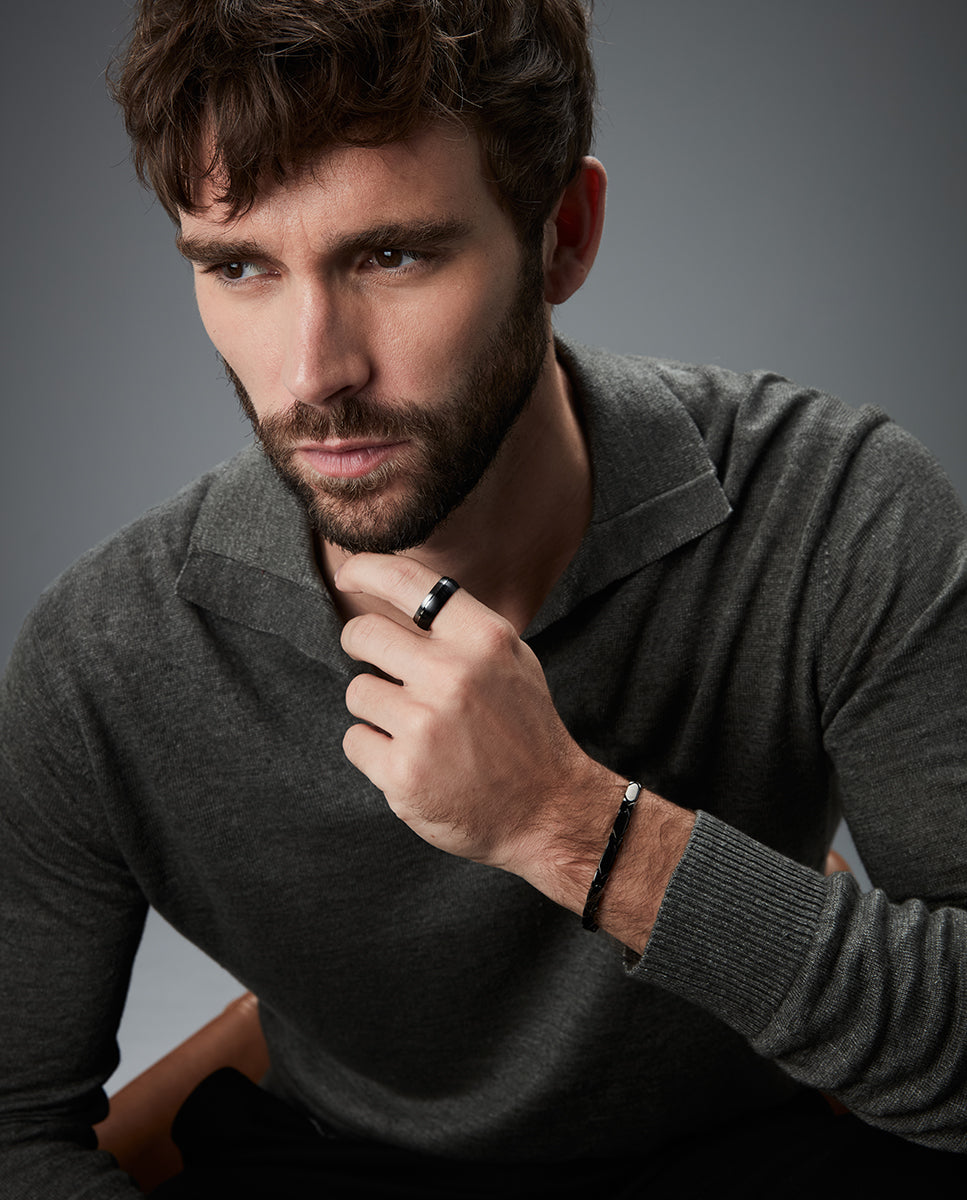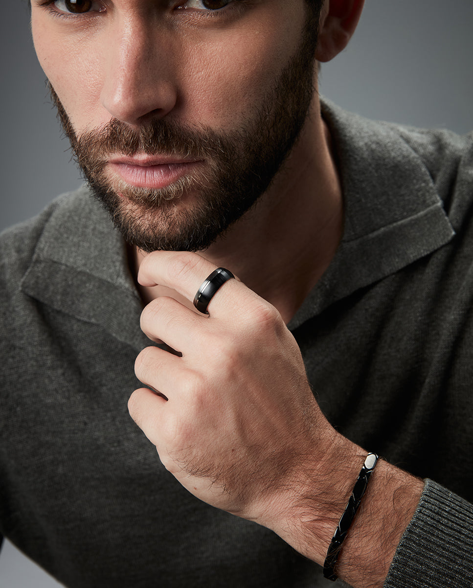 Anillo de hombre de acero combinado Ip negro y gris mate