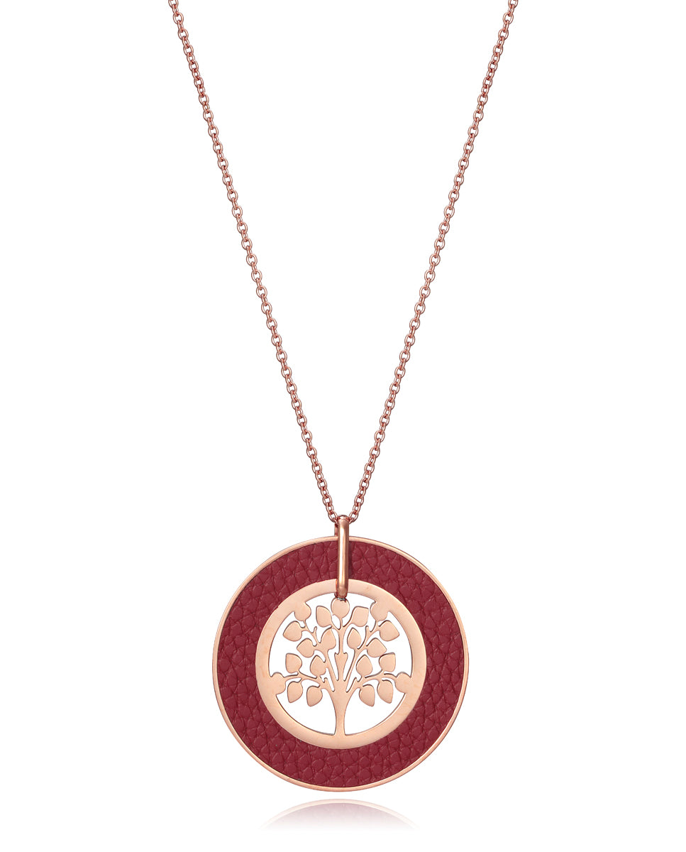 Schicker langer Anhänger aus Stahl und Rahmen aus rotem Leder