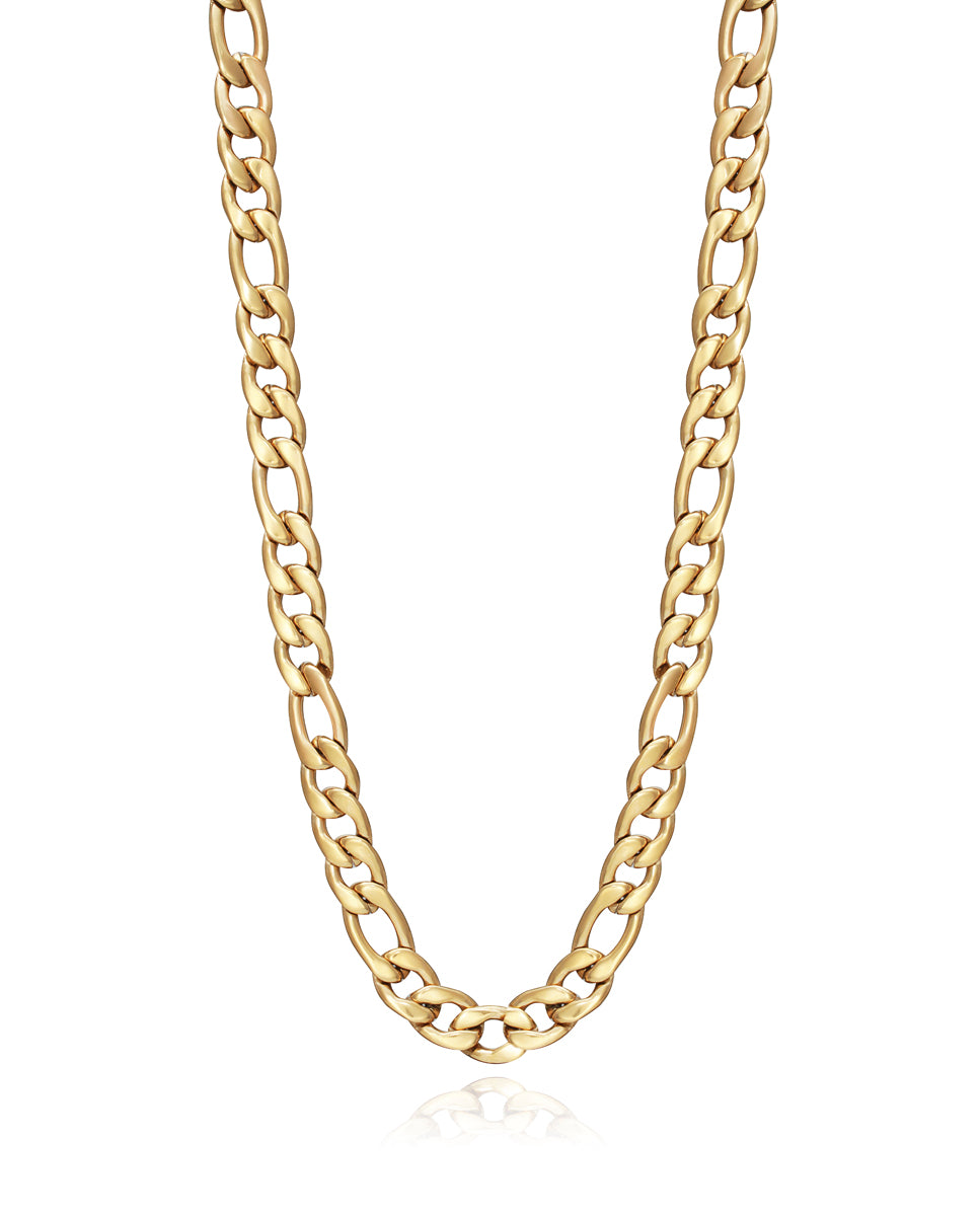 Schicke Kette aus goldenem IP-Stahl vom Typ Figaro, dick, mit Karabinerverschluss
