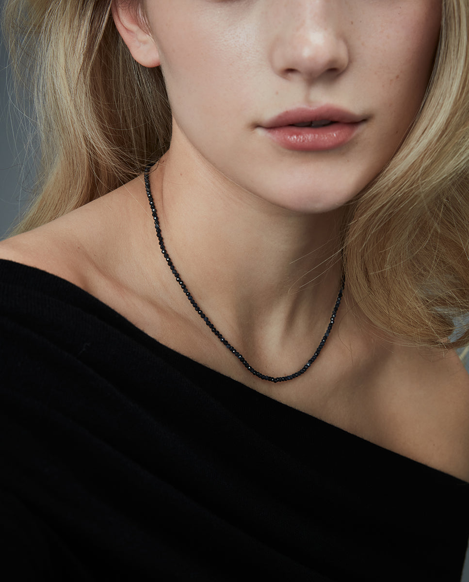Damenhalskette aus vergoldetem IP-Stahl mit natürlichen Saphirsteinen