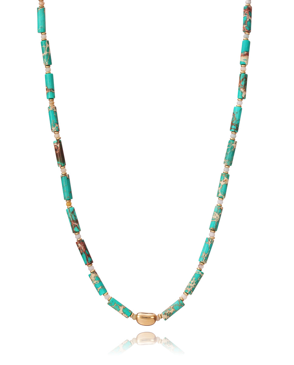 Schicke Stahlhalskette in Gold Ip mit Türkis- und Achatsteinen