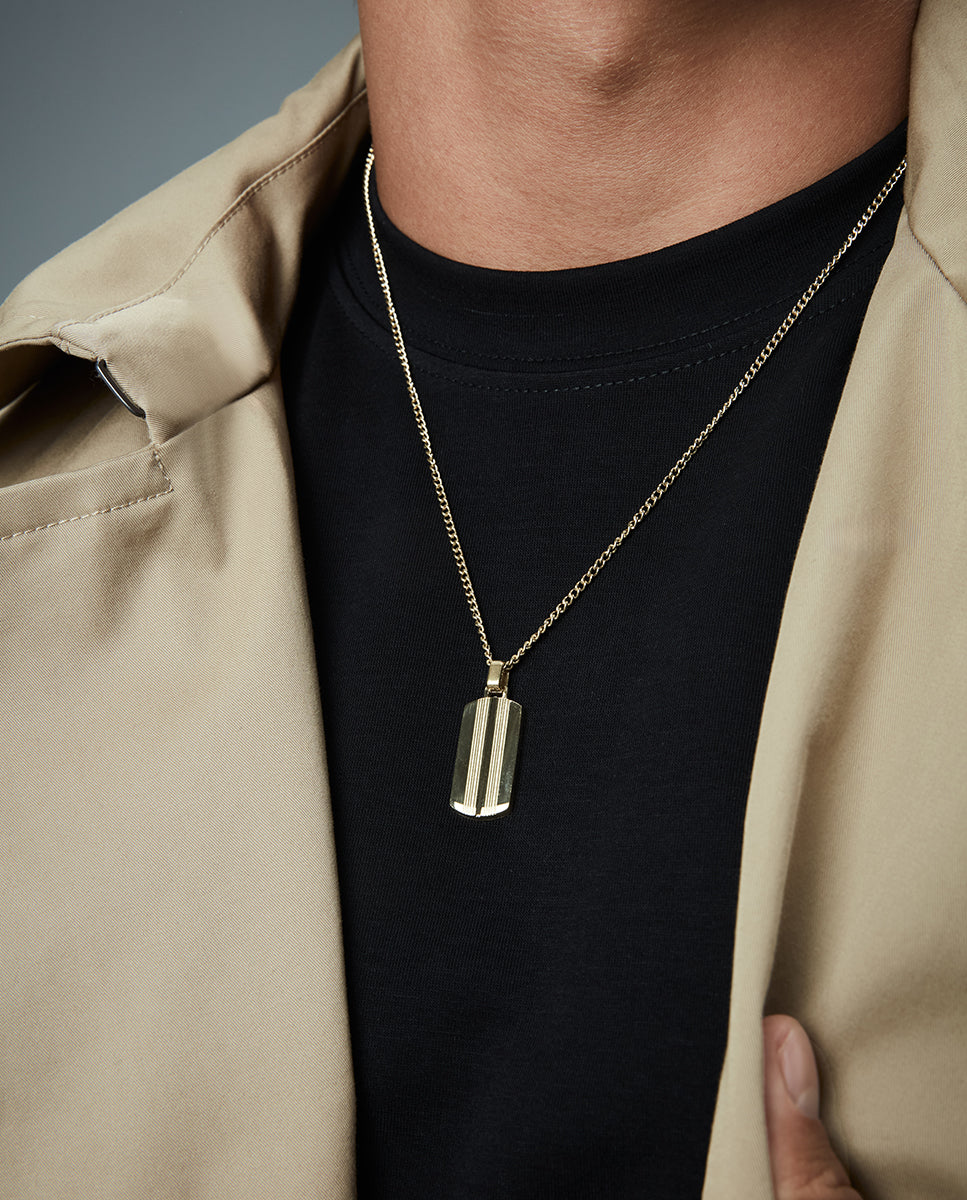 Herrenhalskette aus vergoldetem IP-Stahl mit Plättchenanhänger