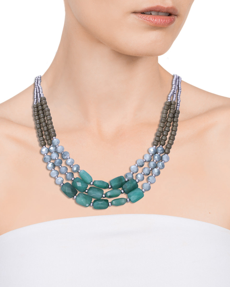 Schicke Halskette aus Stahl mit Aventurin, Jade und Steinen