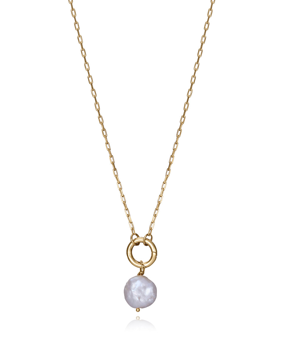 Elegante Creolenkette aus vergoldetem Sterlingsilber mit Zuchtperlenanhänger