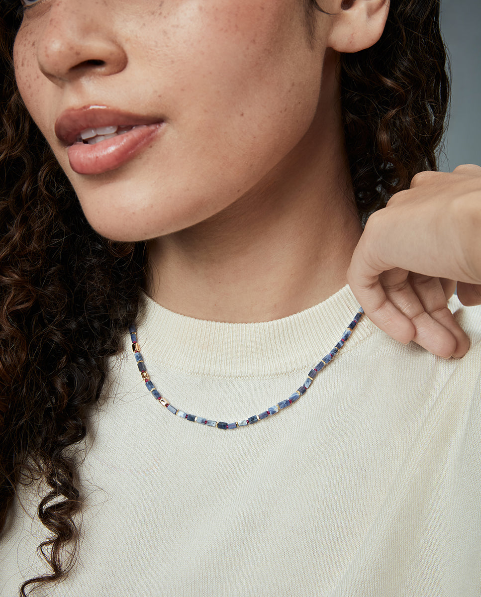 Vergoldete Halskette aus Sterlingsilber mit Natursteinen