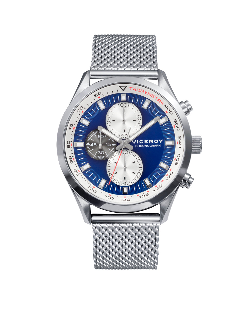 Magnum-Herrenuhr aus Stahl mit Chronograph und Milanaise-Netz