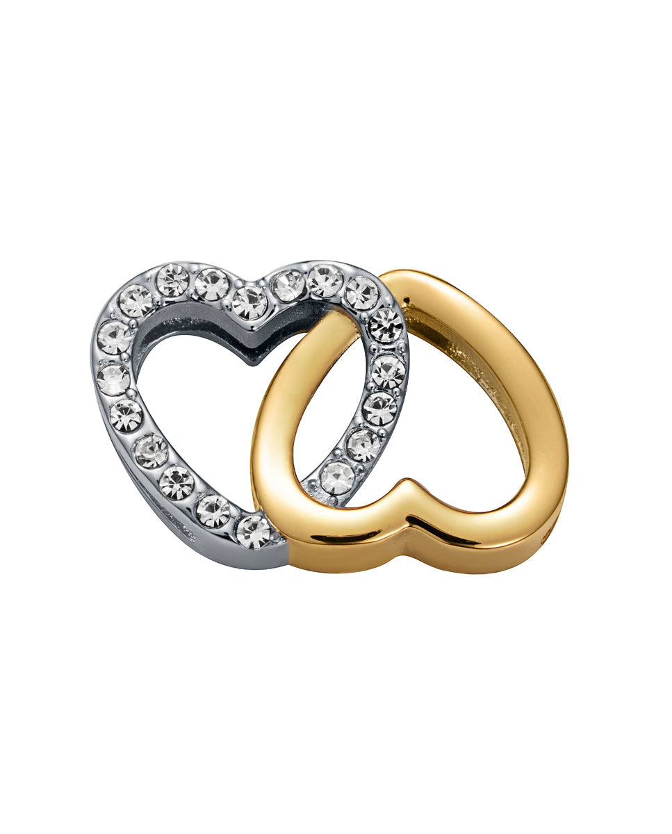 Goldenes IP-Stahlmotiv in Form ineinander verschlungener Herzen zur Montage an einem individuell gestaltbaren Armband