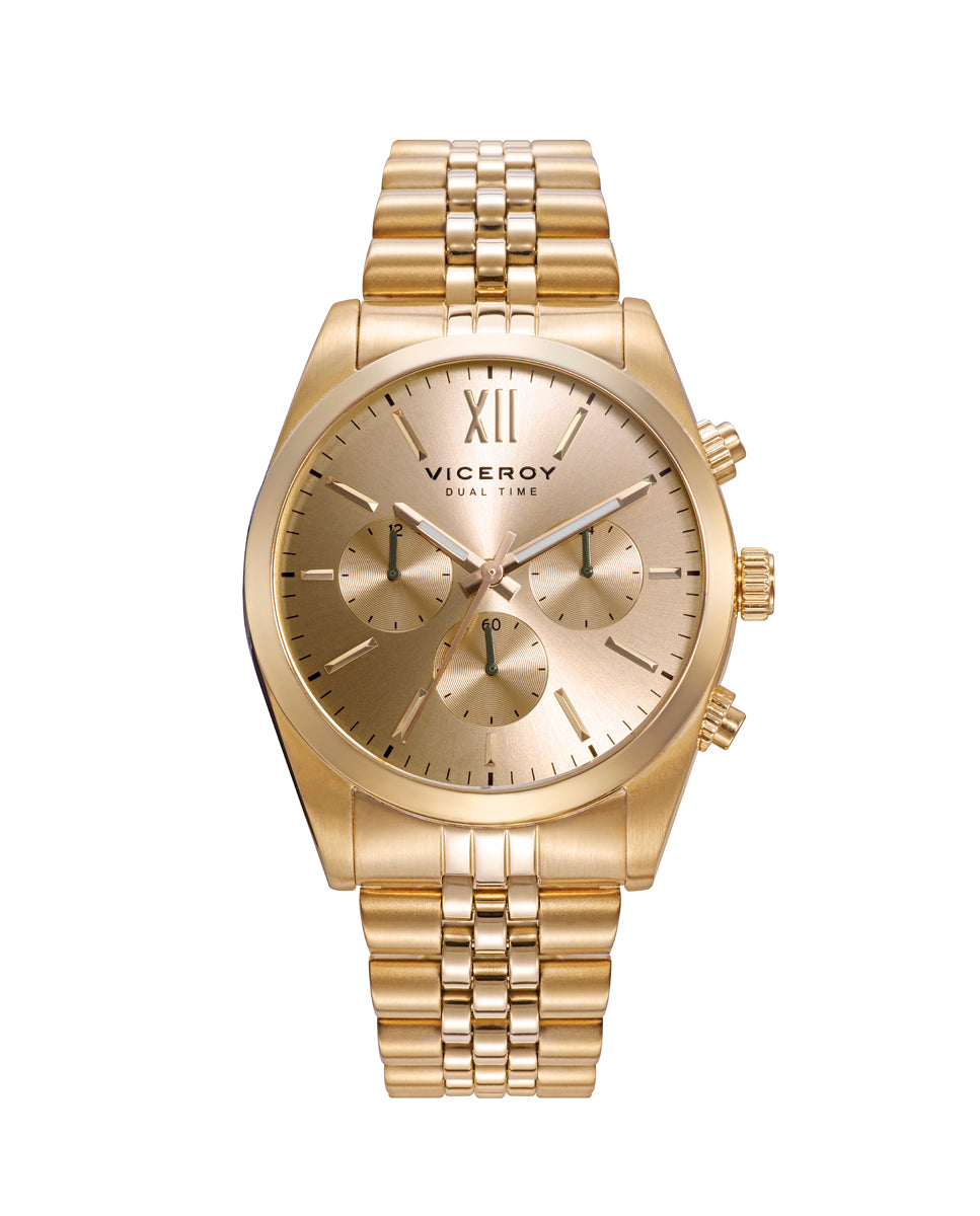 IP-goldenes Zifferblatt, schicke Multifunktions-Herrenuhr aus Stahl