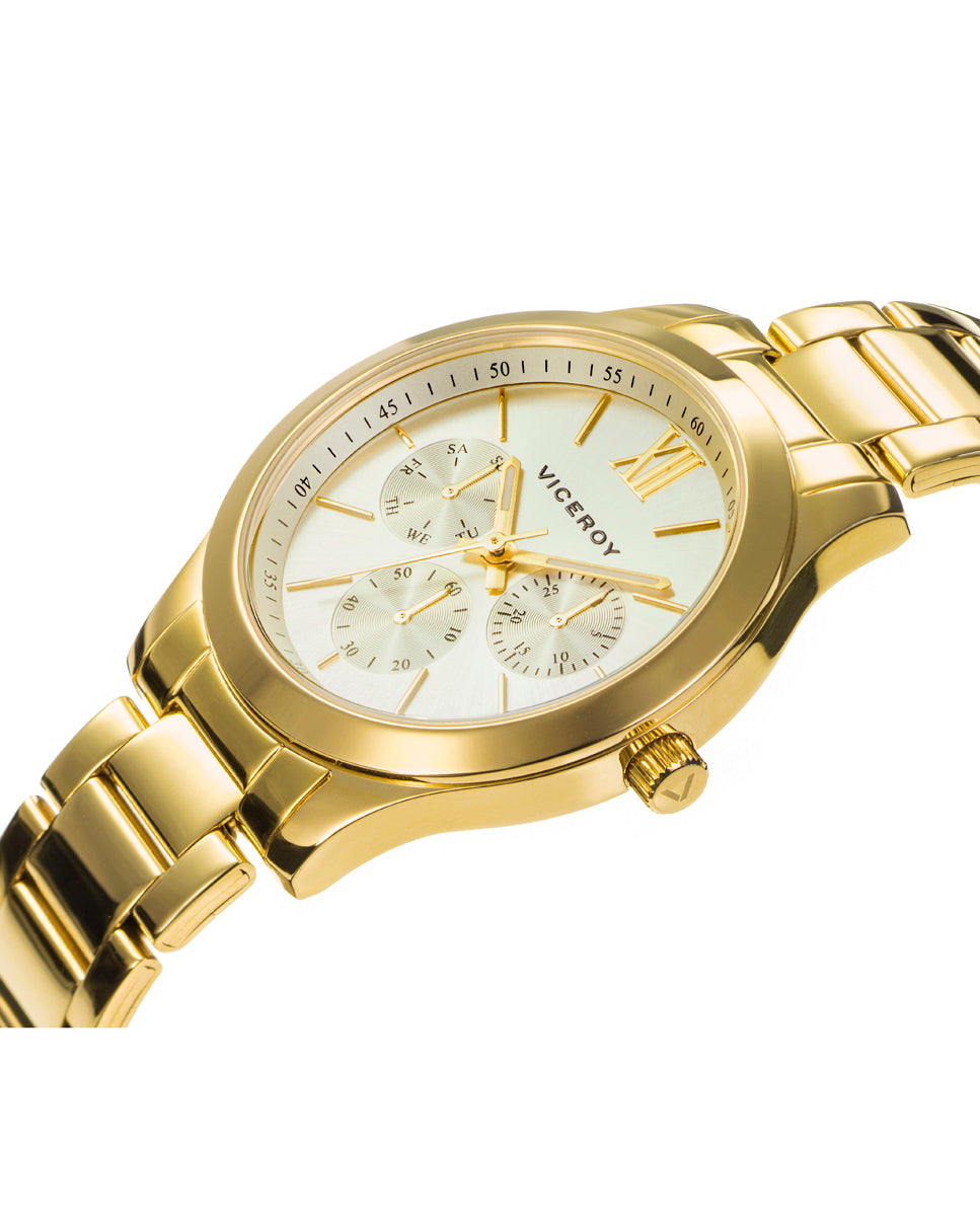 Schicke Multifunktions-Damenuhr aus Stahl mit goldenem IP