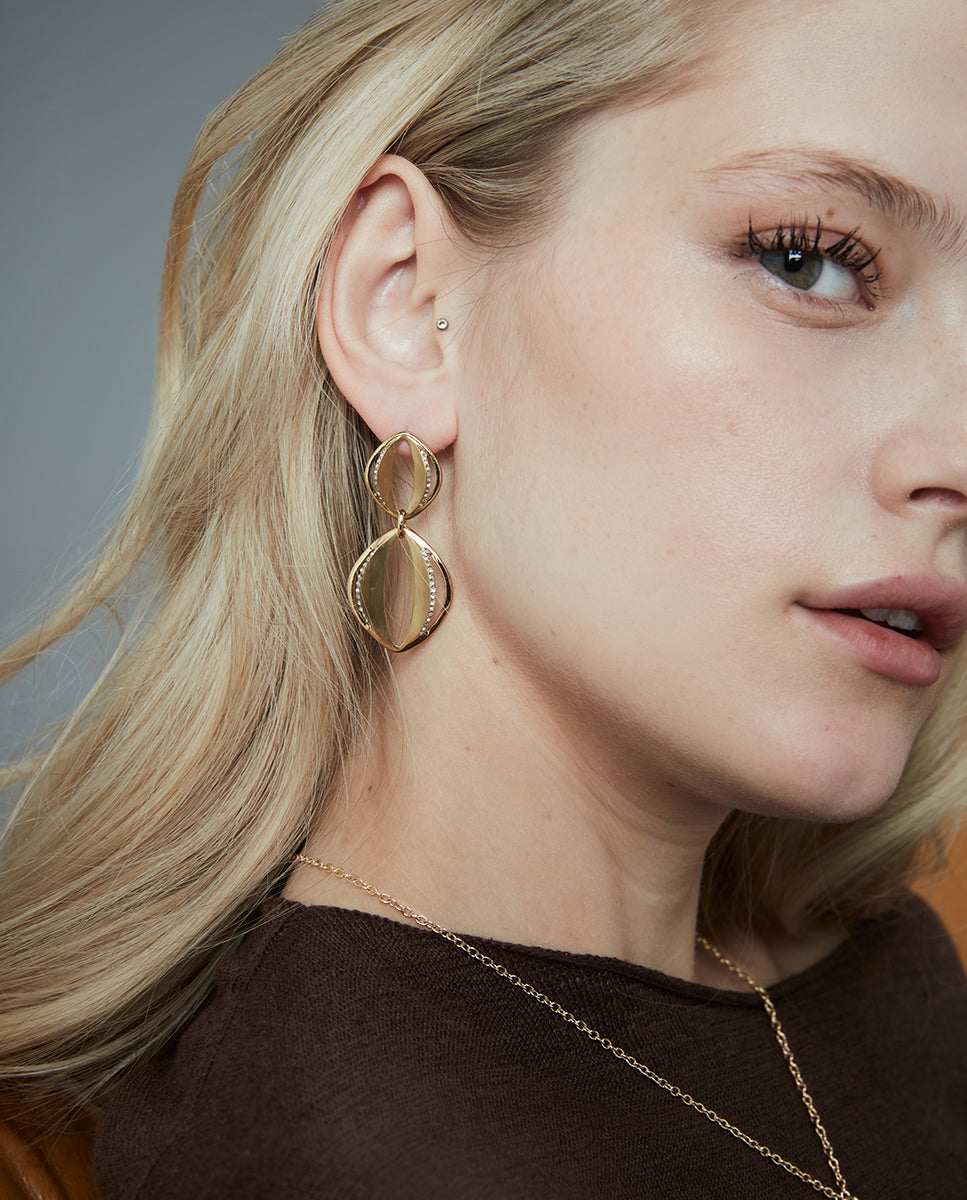 Vergoldete IP-Stahlohrringe für Damen mit einem Anhänger mit weißen Zirkonen