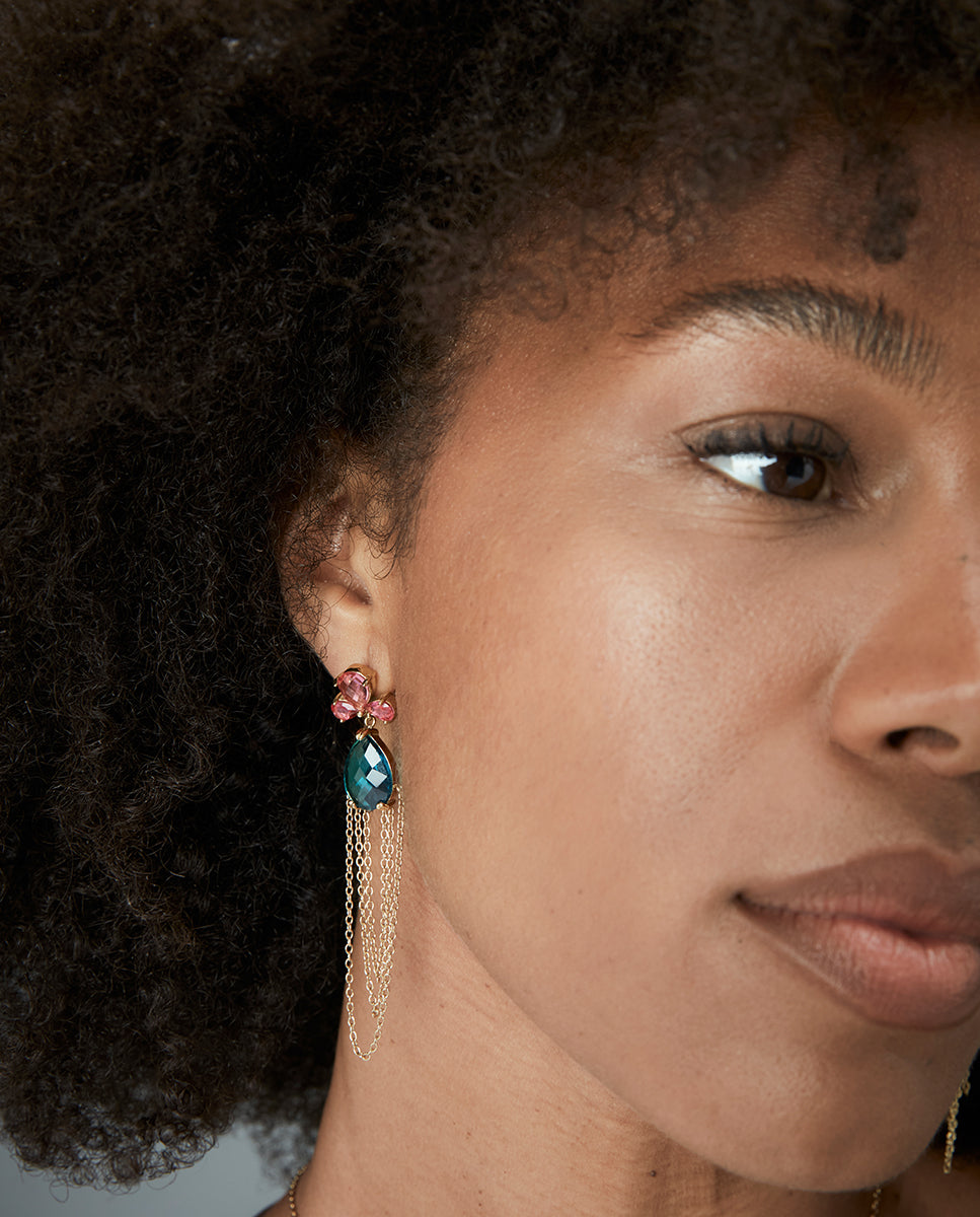 Vergoldete Damenohrringe aus IP-Stahl mit Kristallen und hängenden Ketten
