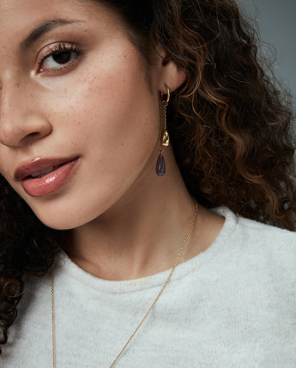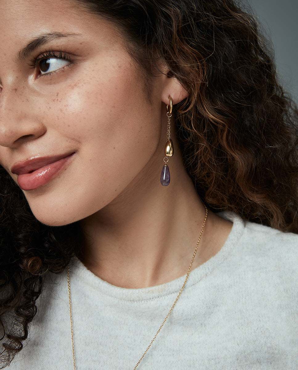 Damenohrringe aus vergoldetem IP-Stahl mit Ketten und Anhängern aus Stahl und Naturstein