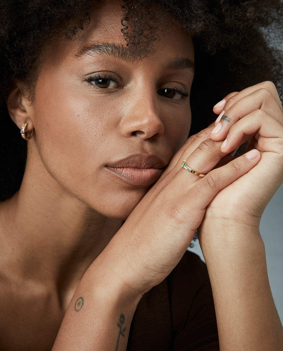 Vergoldete Sterlingsilber-Ohrringe mit einem Ring und Zirkonen