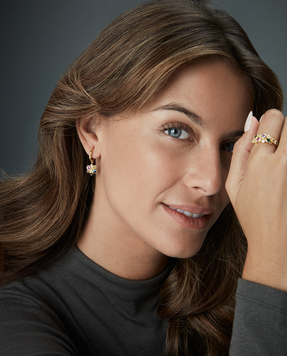 Vergoldete Sterlingsilber-Ohrringe mit einem Creolen und einem Anhänger mit Zirkonen