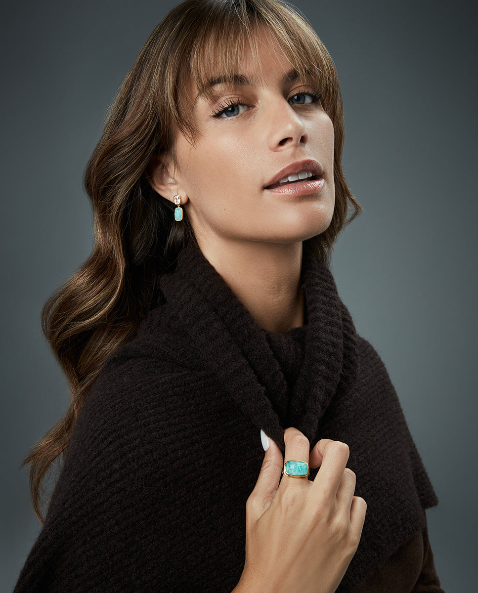 Vergoldete Ohrringe aus Sterlingsilber mit Natursteinen, Doublet-Amazonit und Kristall sowie Zirkonen.