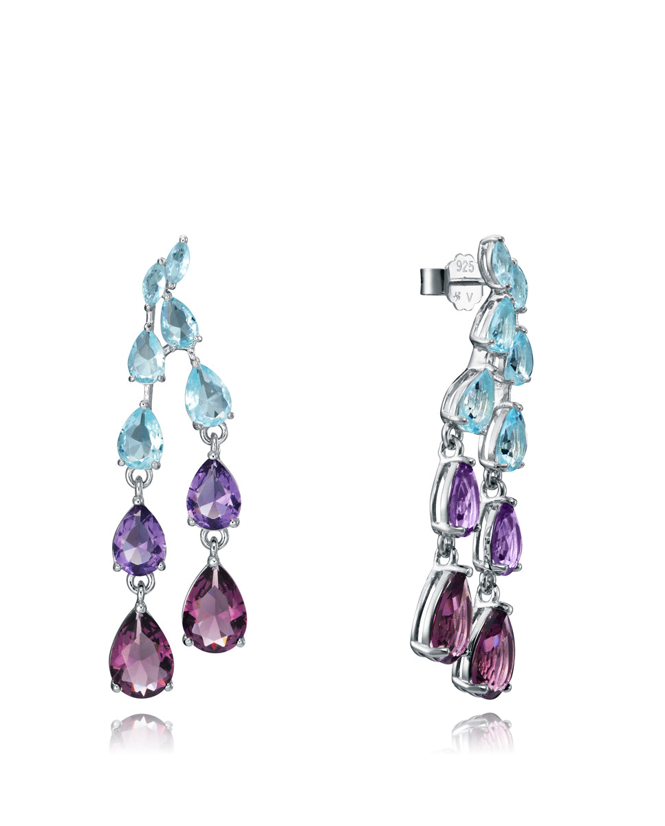 Pendientes Fiesta de plata de ley con cristales de varios colores