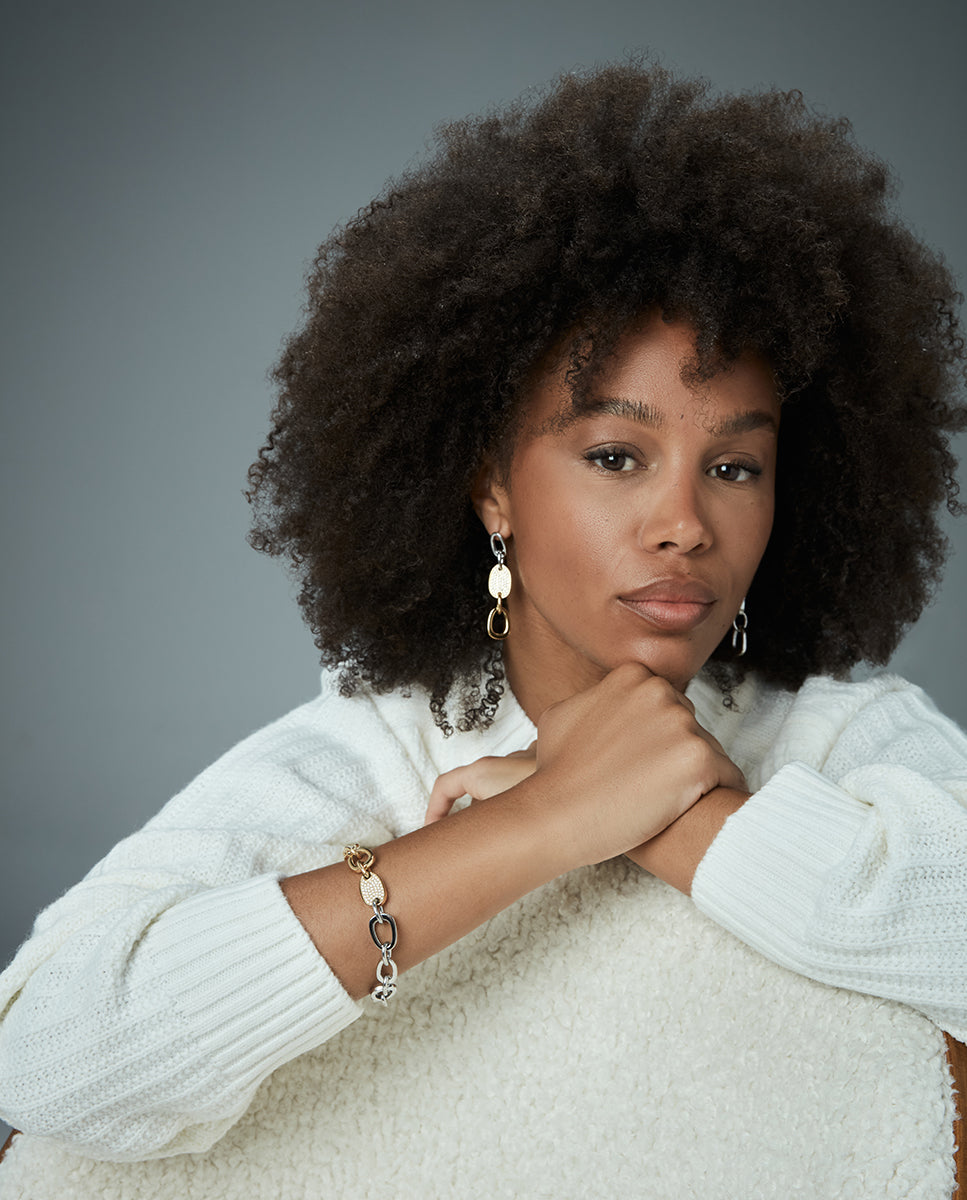 Damenarmband aus Stahl und vergoldetem IP mit Gliedern und weißen Zirkonen