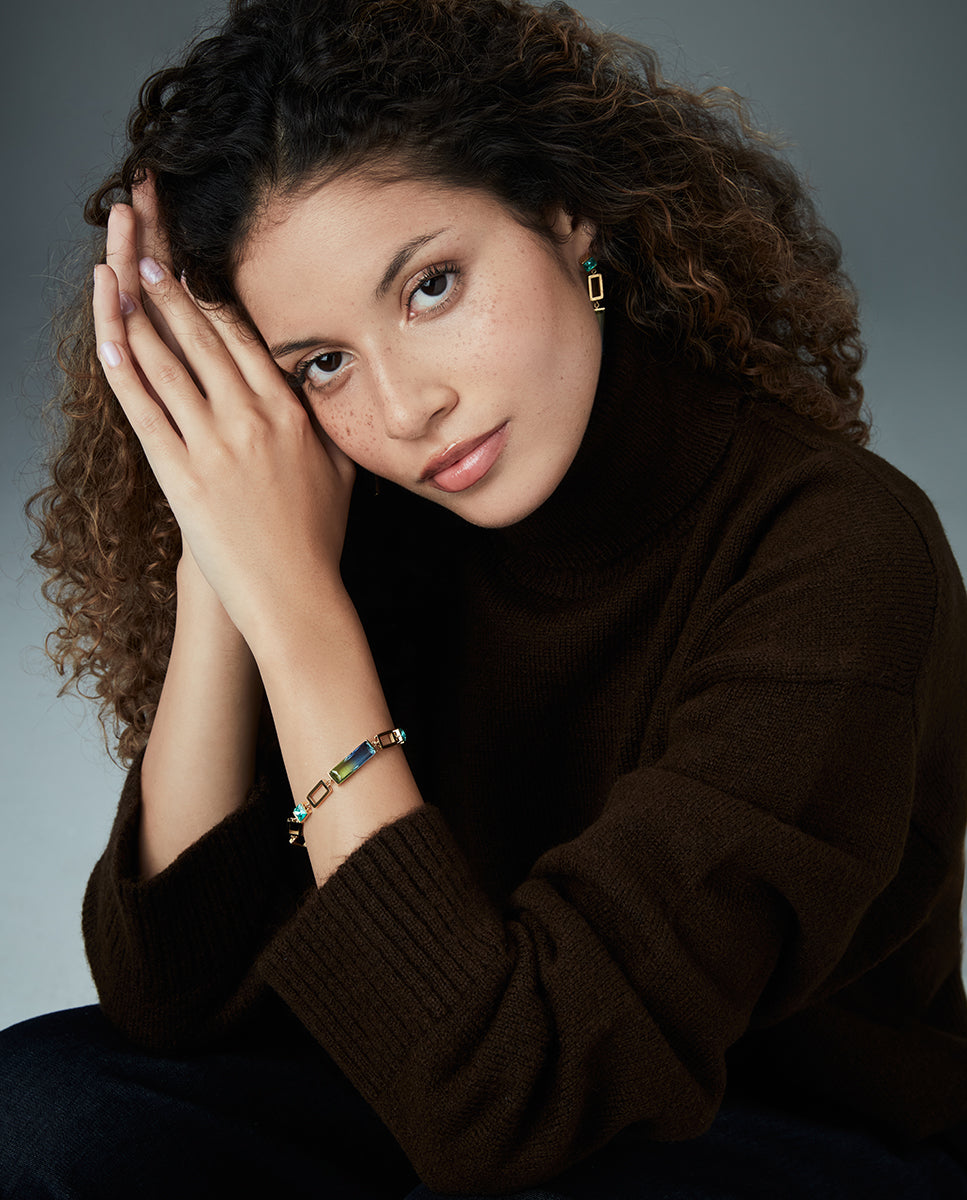 Damenarmband aus vergoldetem IP-Stahl mit grünen und blauen Kristallen