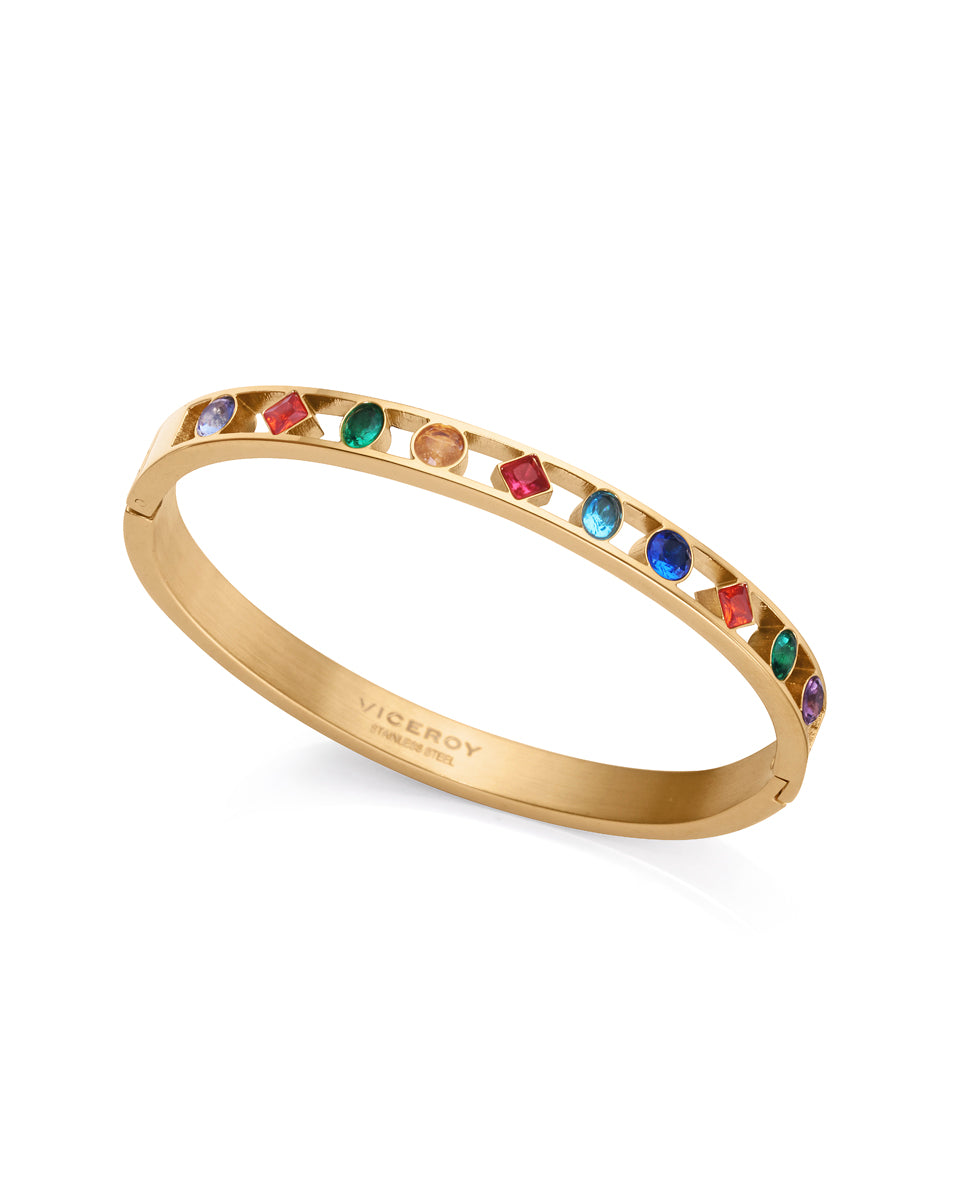 Schickes Armband aus goldenem Ip-Stahl, geschlossen mit Emaille und farbigen Zirkonen