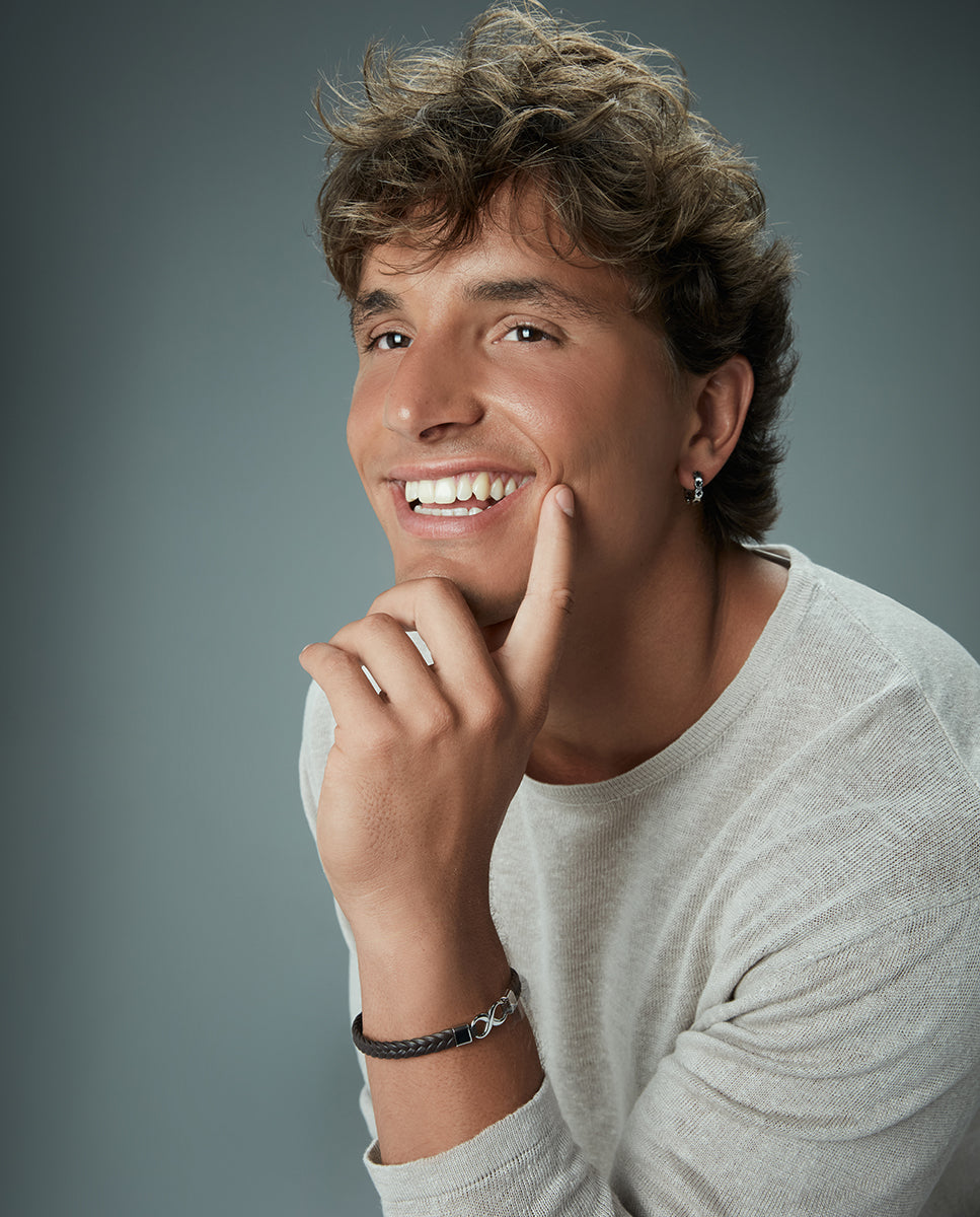 Herrenarmband aus Stahl und geflochtenem braunem Leder
