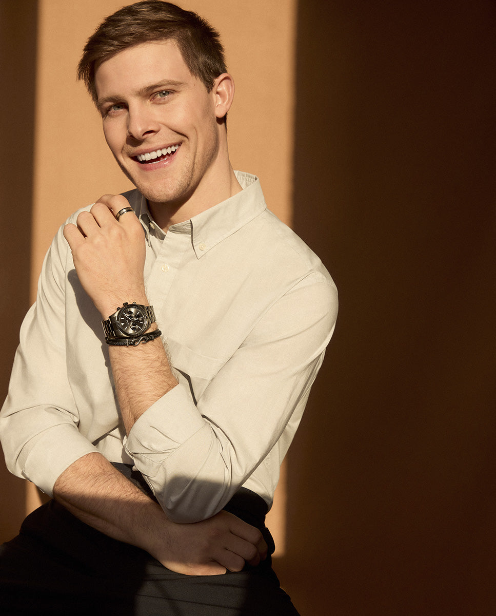 Magnum-Armband aus Stahl und schwarzem Leder