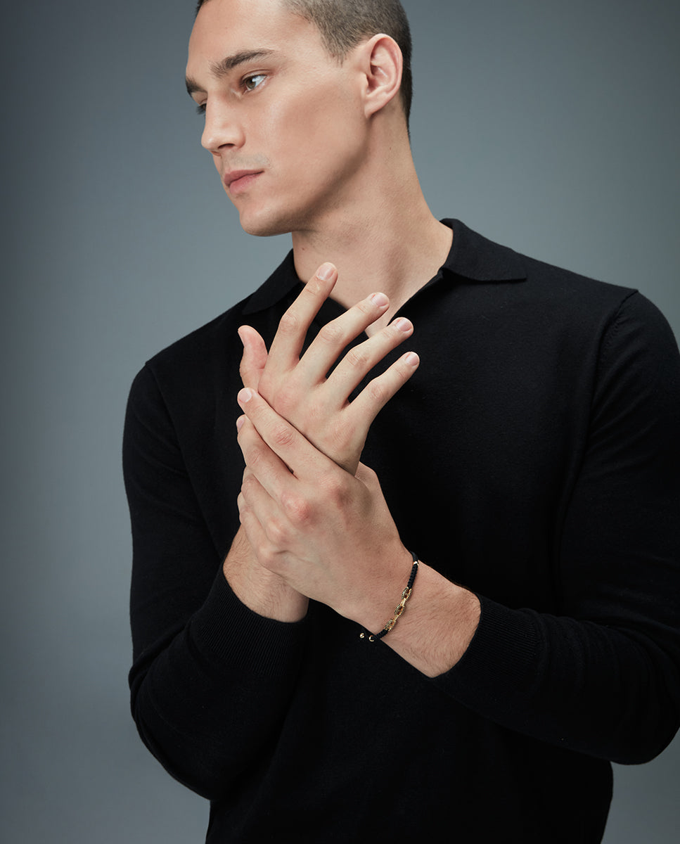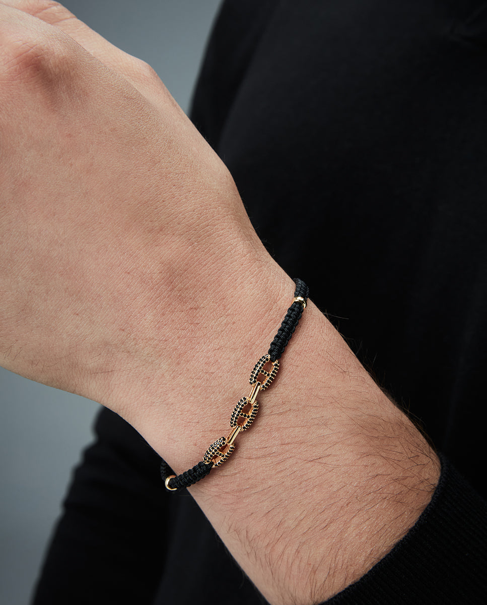 Vergoldetes Sterlingsilberarmband mit schwarzer Kordel