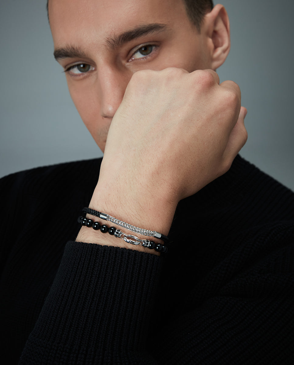 Rhodiniertes Sterlingsilberarmband mit Natursteinen
