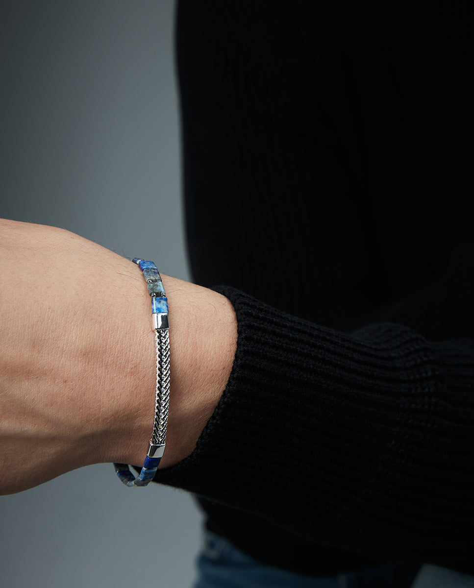 Rhodiniertes Sterlingsilberarmband mit Natursteinen