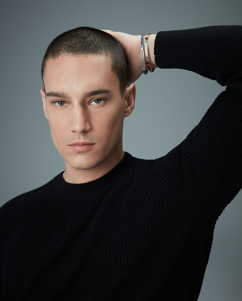 Reinigen Sie es mit einem speziellen Schmucktuch oder mit etwas warmem Wasser und neutraler Seife und vermeiden Sie dabei, dass die Haut oder das Band damit in Berührung kommen Wasser.