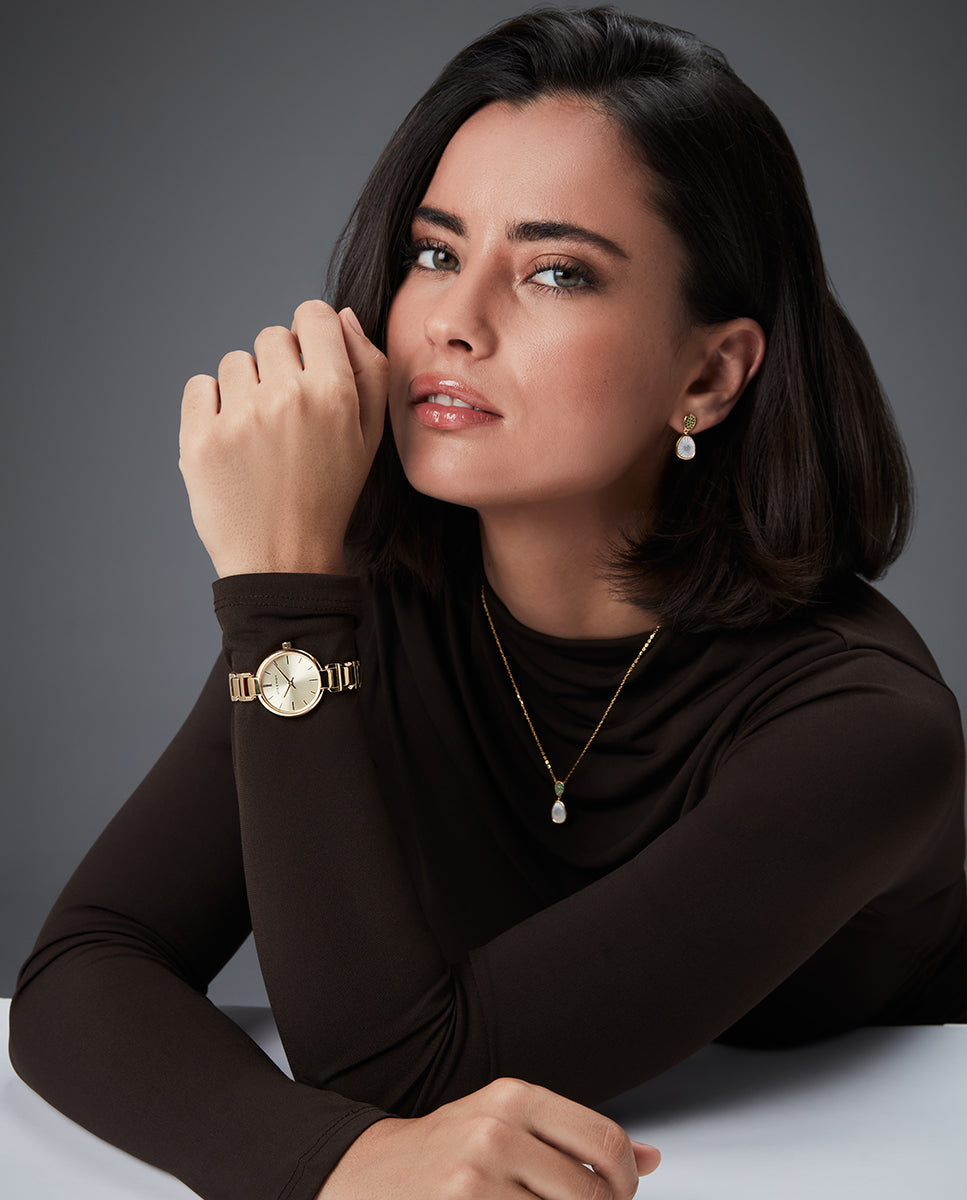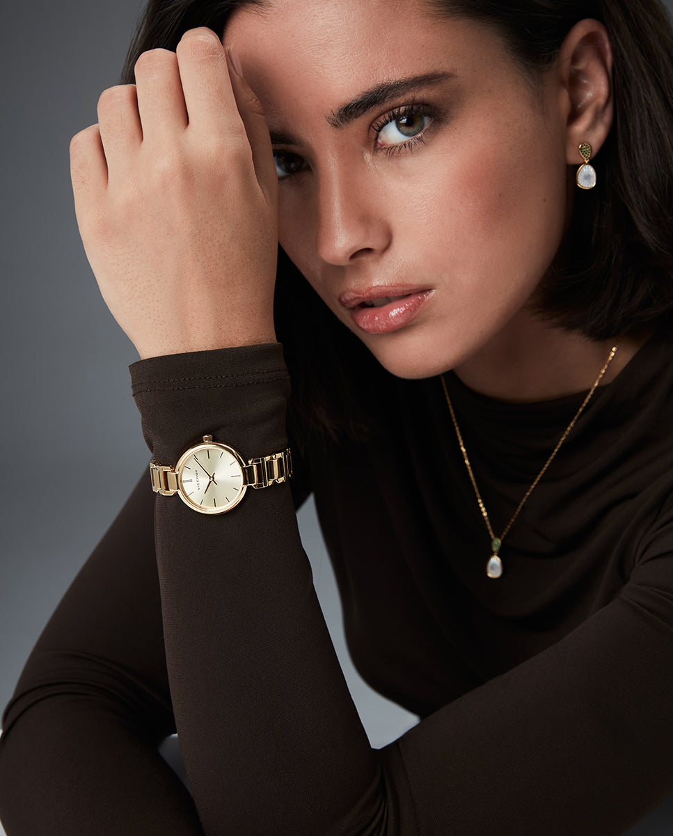 Uhr mit vergoldetem IP-Stahlgehäuse, vergoldetem IP-Stahlarmband, Quarzwerk