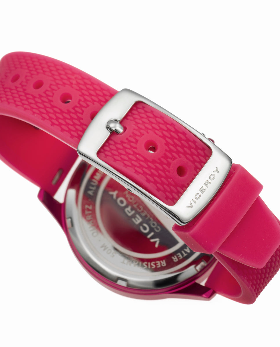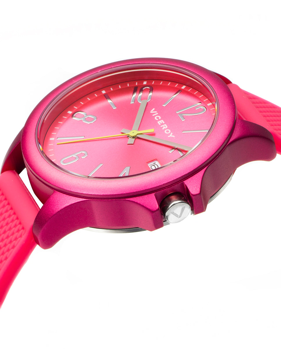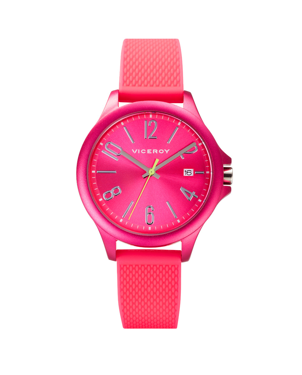 Colours Damenuhr mit 3 fuchsiafarbenen Aluminiumzeigern und Silikonarmband