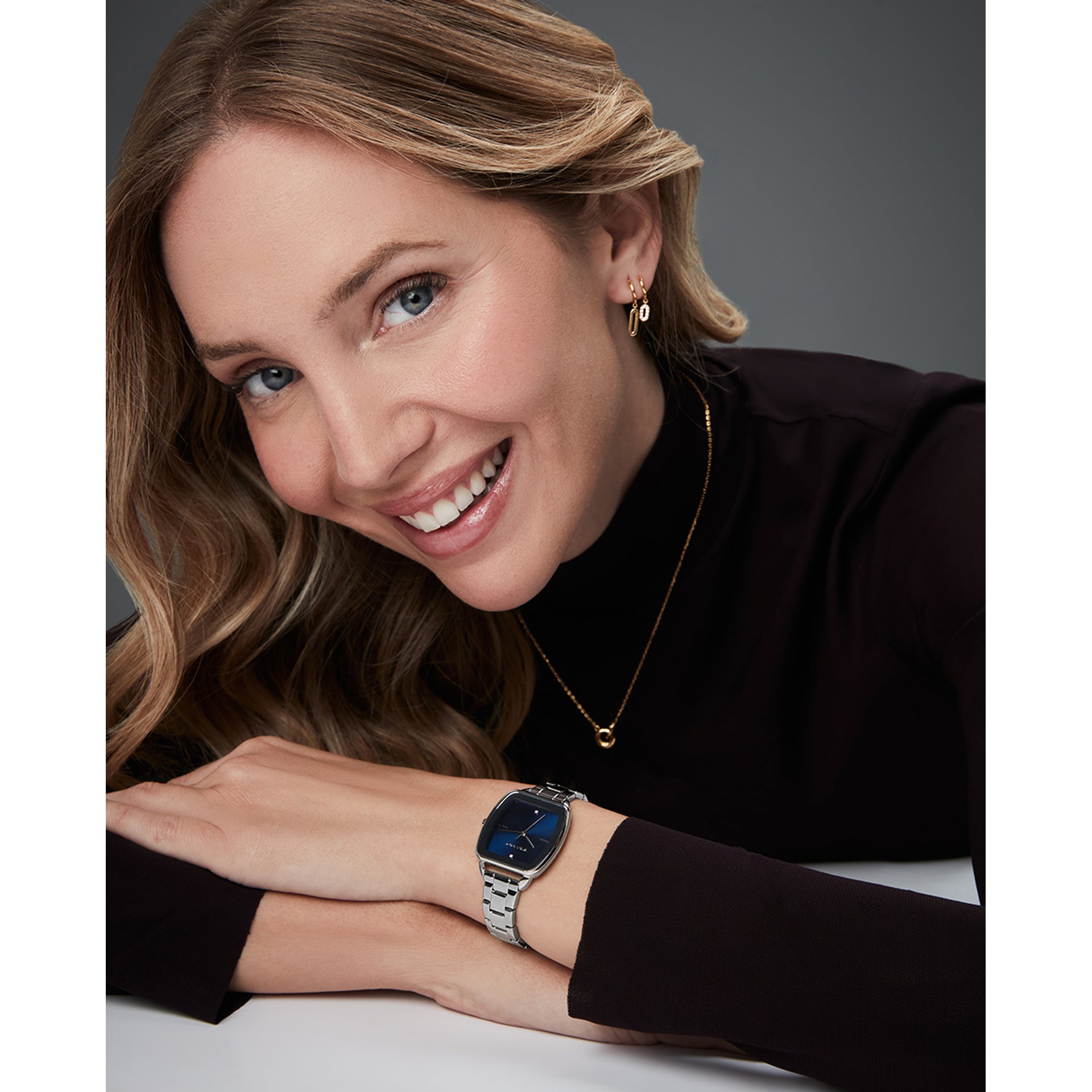 Reloj caja de acero 10 Atm, brazalete de acero, movimiento cuarzo colección Laura Escanes