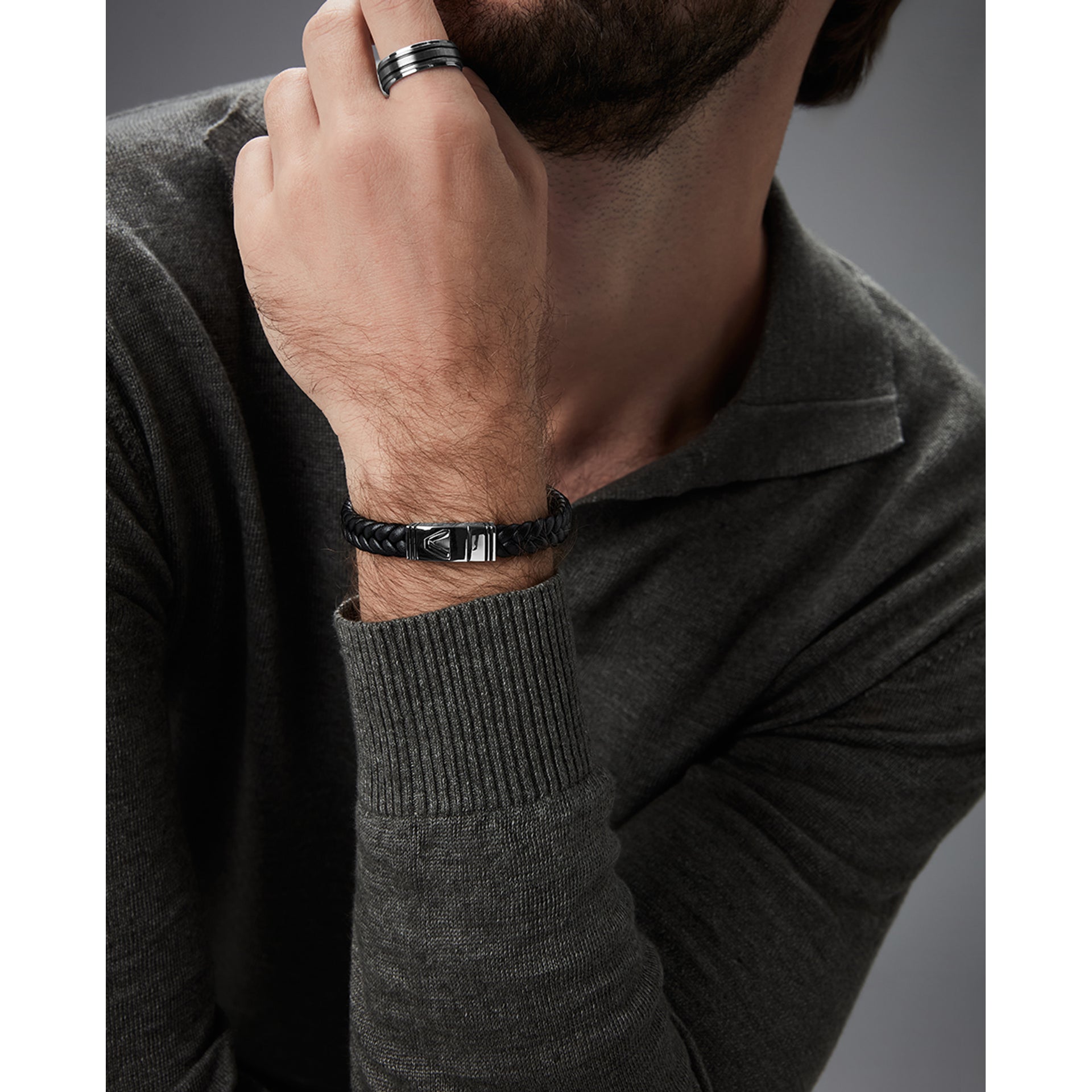Anillo de hombre Magnum de acero con motivo de cerámica en negro
