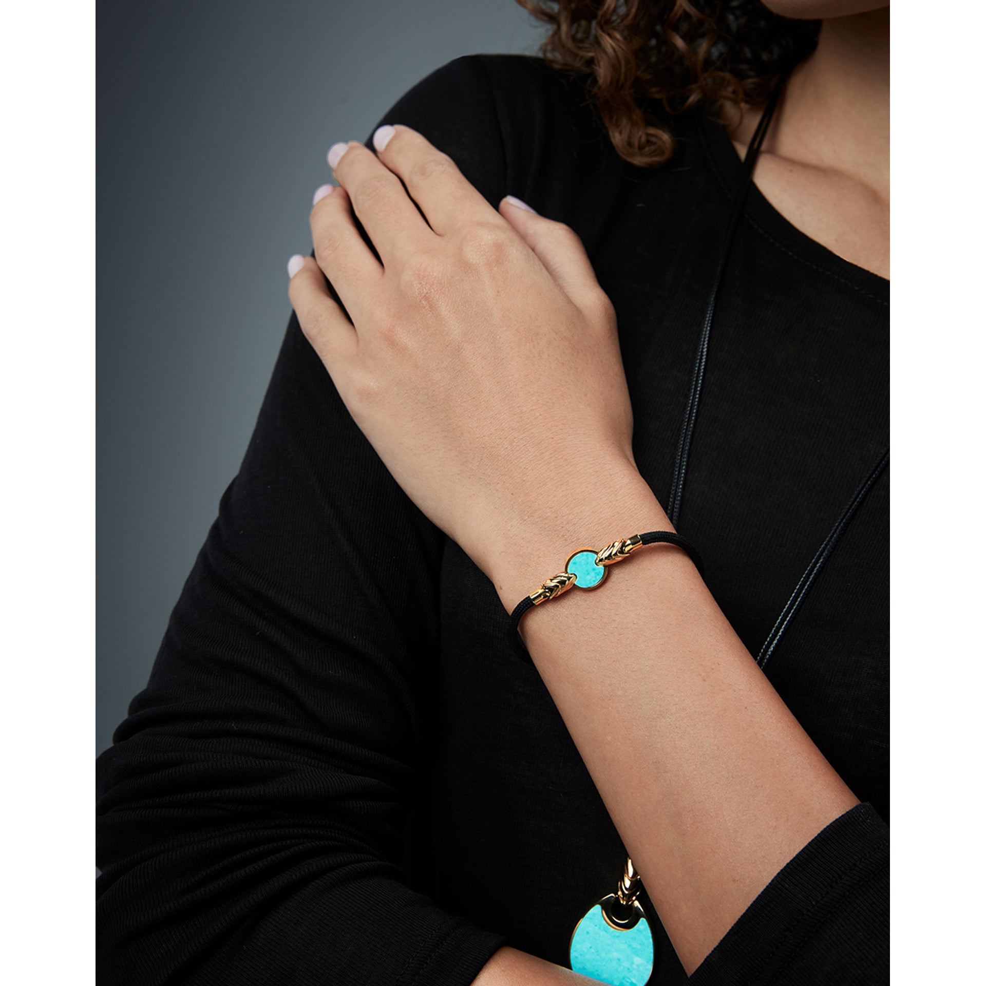Adjustable gold-plated IP steel women's necklace with natural stone