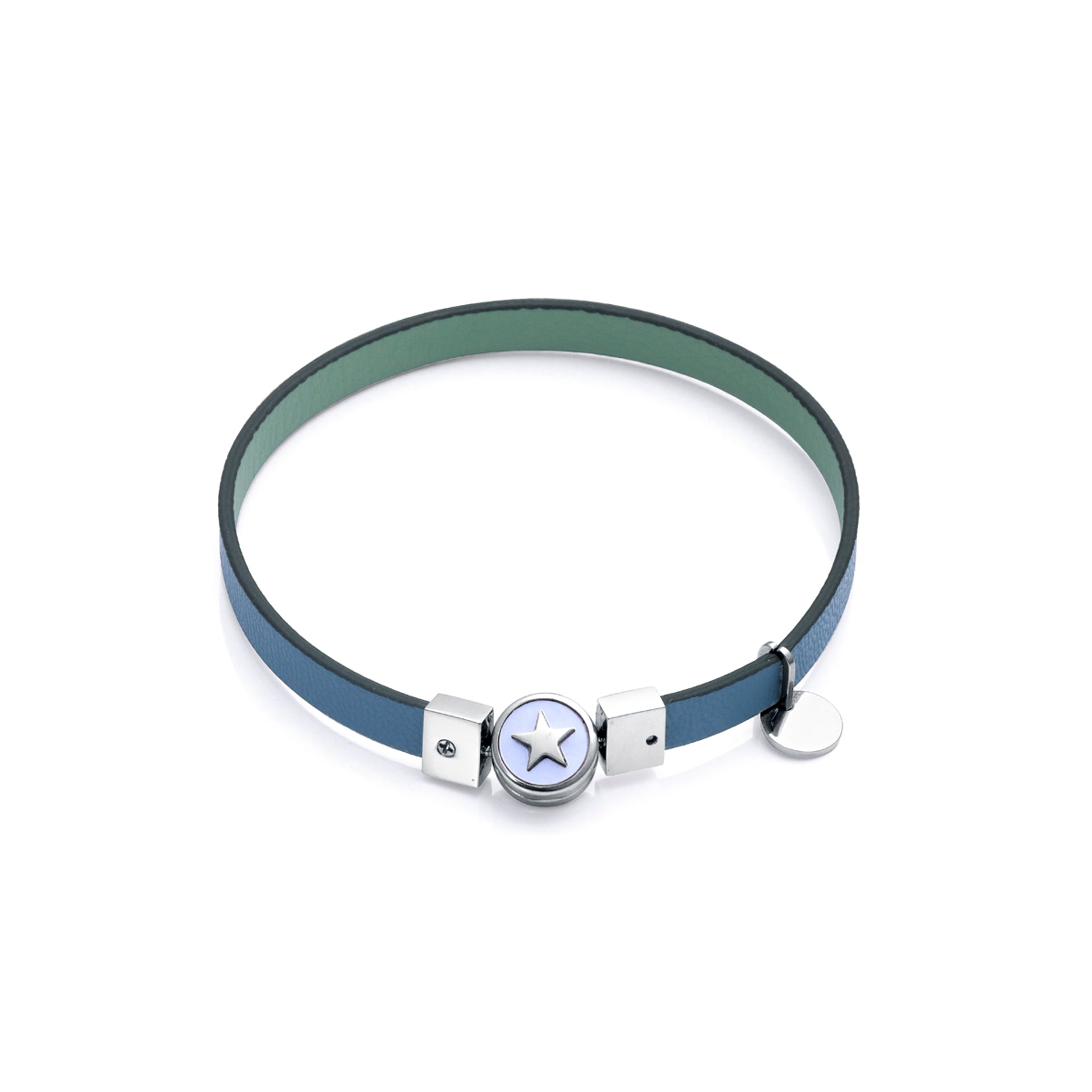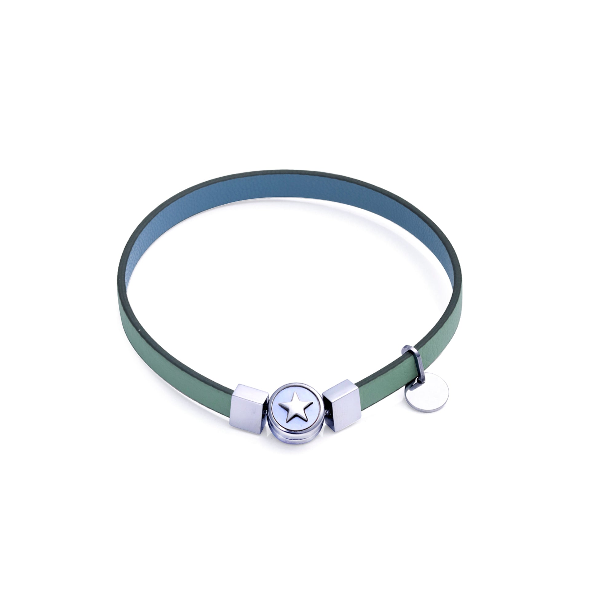 Eco bracelet in recycled steel and gold Ip with green vegan strap