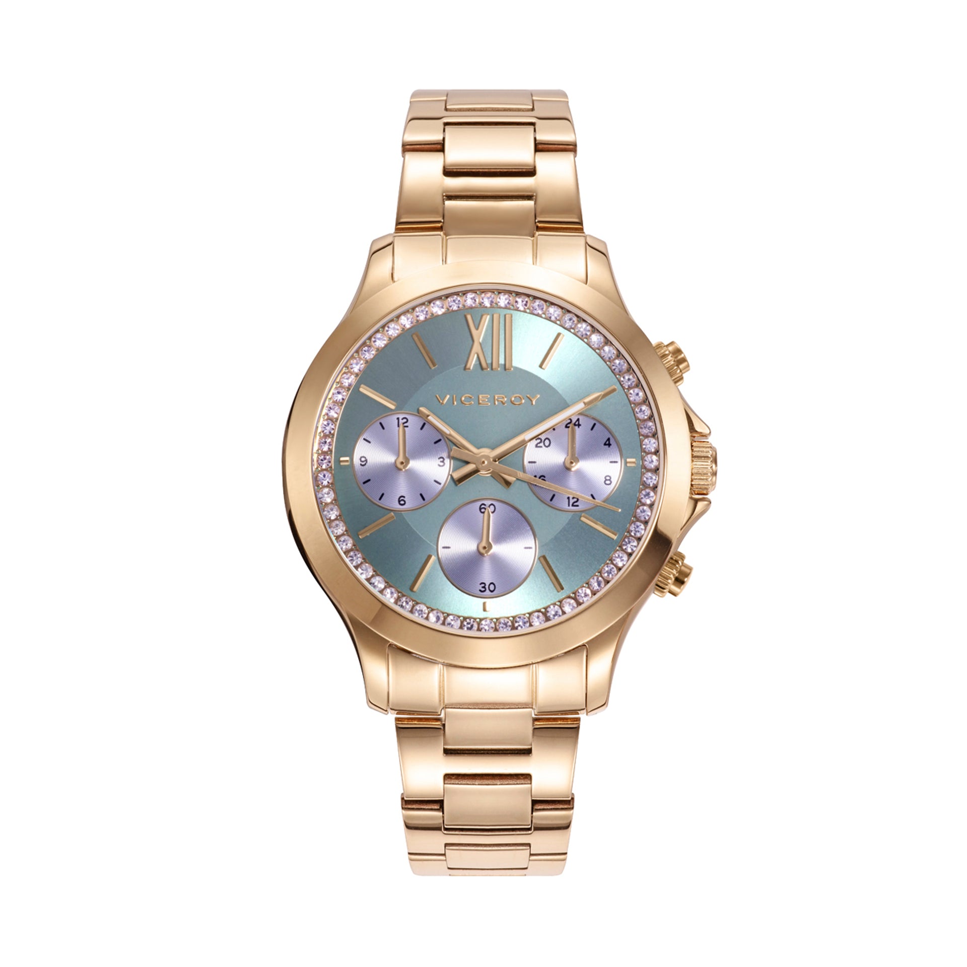 Women's earrings made of gold-plated IP steel with chains and pendants made of steel and natural stone