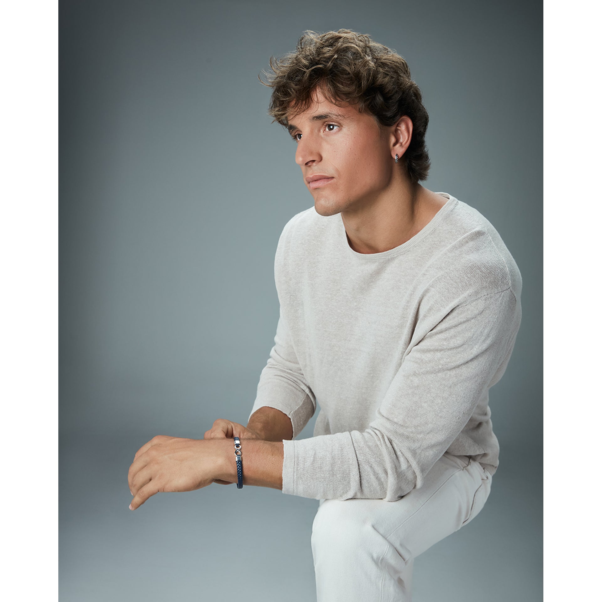 Men's gray IP steel bracelet with plaque and blue braided leather