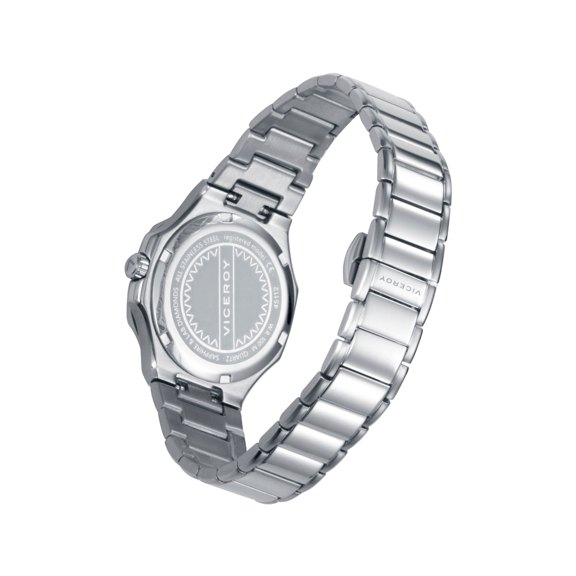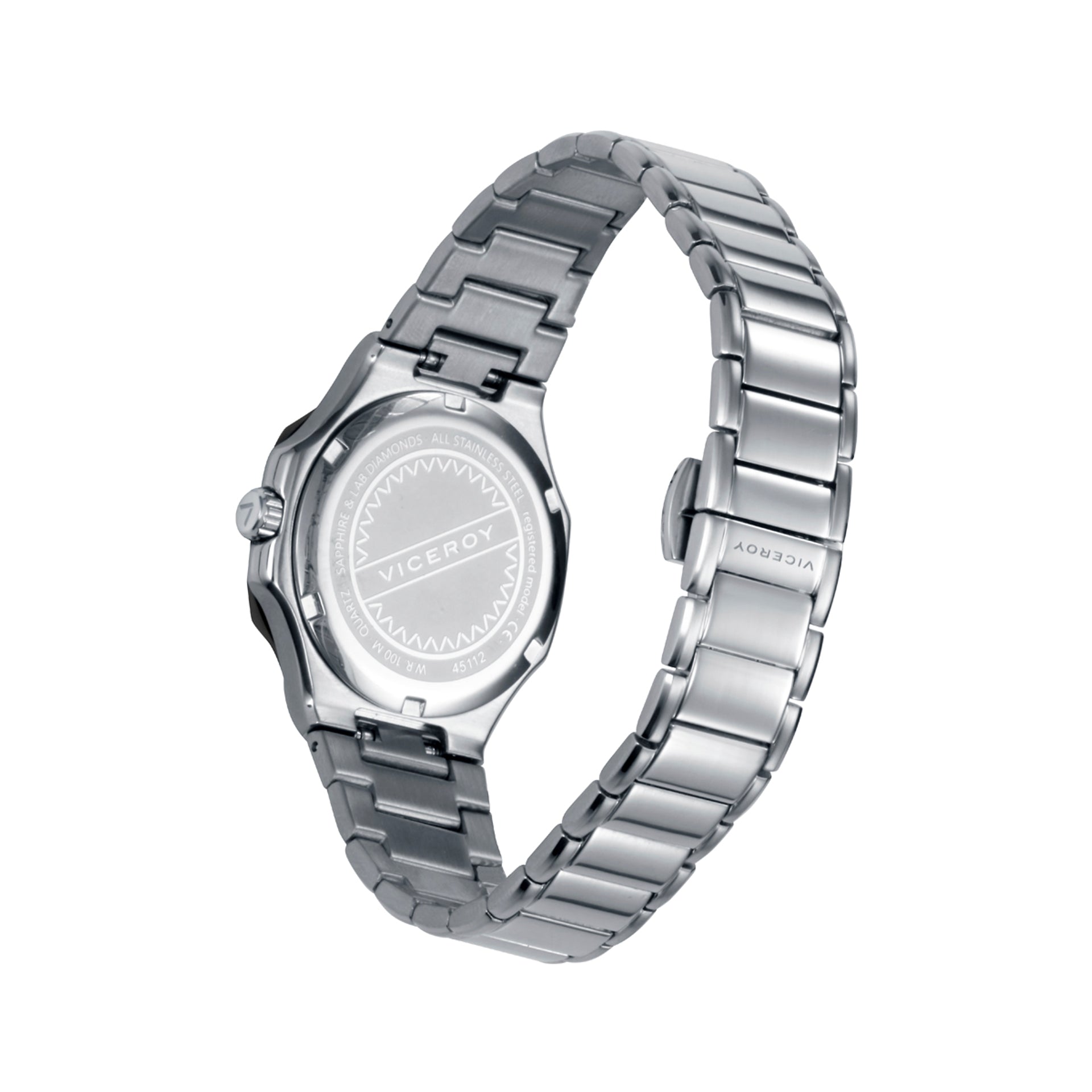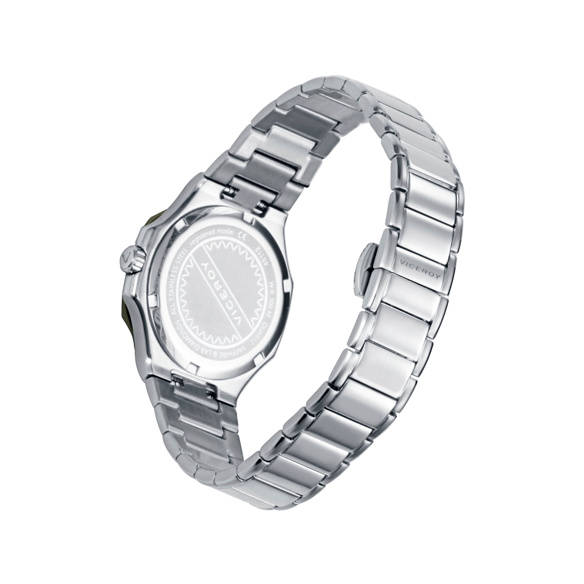 Reloj caja de acero con 6 diamantes creados 10 Atm,brazalete de acero, movimiento cuarzo, colección Laura Escanes