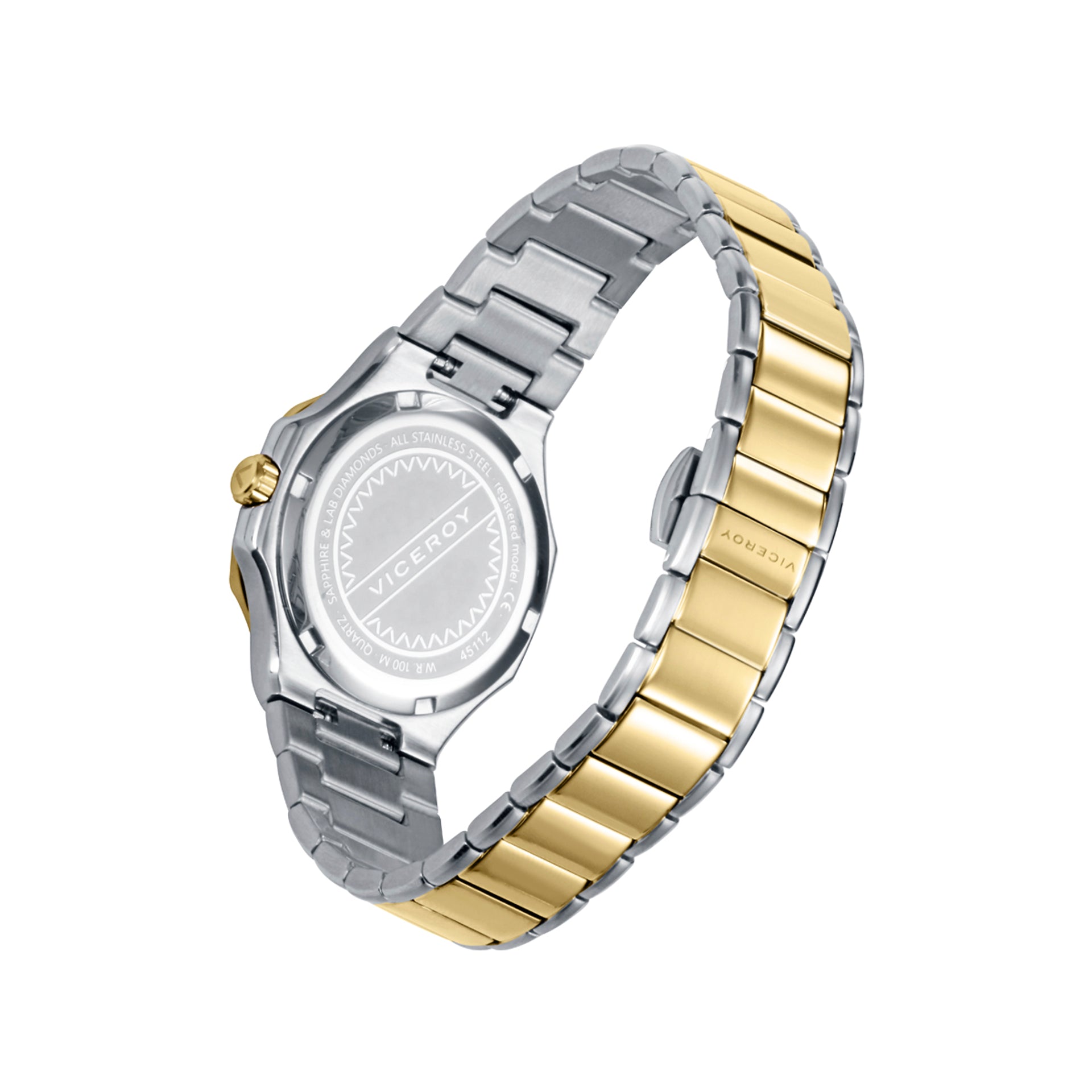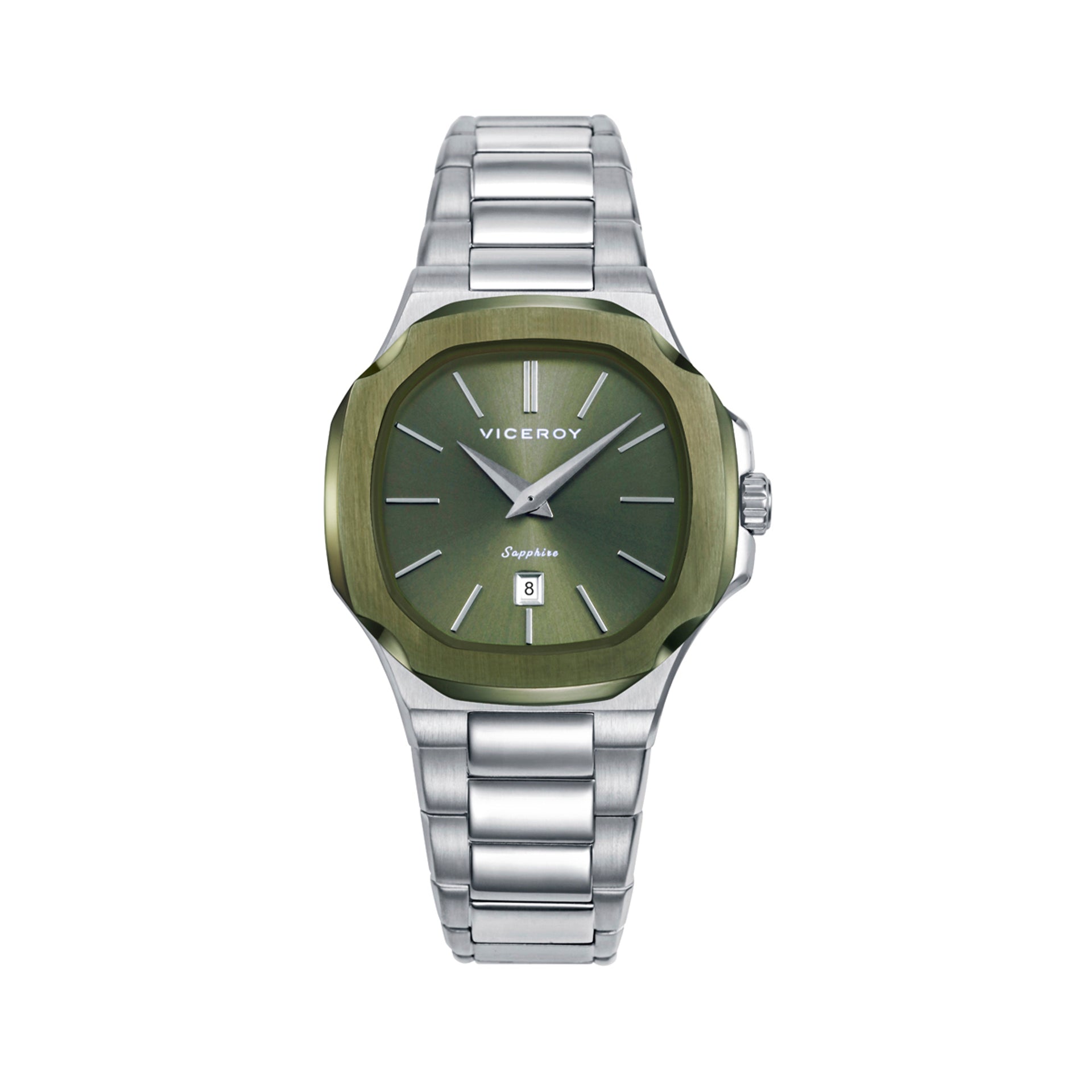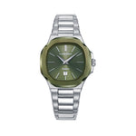 Reloj caja bitono de acero e Ip verde 10 Atm, brazalete de acero, movimiento cuarzo, colección Laura Escanes