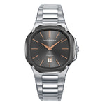 Reloj caja bitono de acero e Ip gris 10 Atm, brazalete de acero movimiento cuarzo, colección Laura Escanes