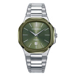 Reloj caja bitono de acero e Ip verde 10 Atm, brazalete de acero, movimiento cuarzo, colección Laura Escanes
