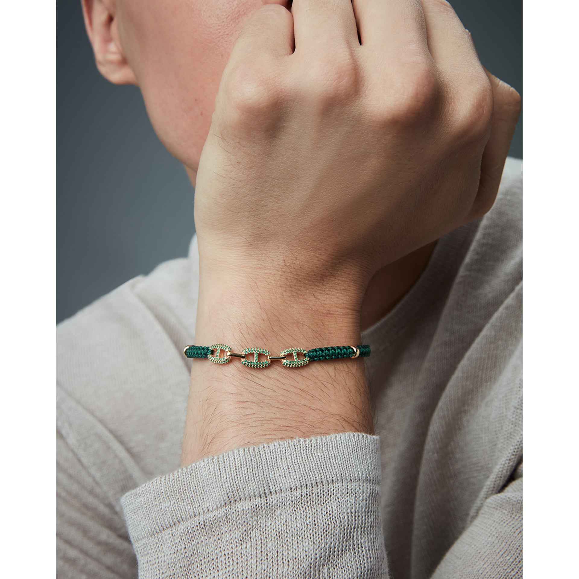 Gold-plated sterling silver bracelet with green cord