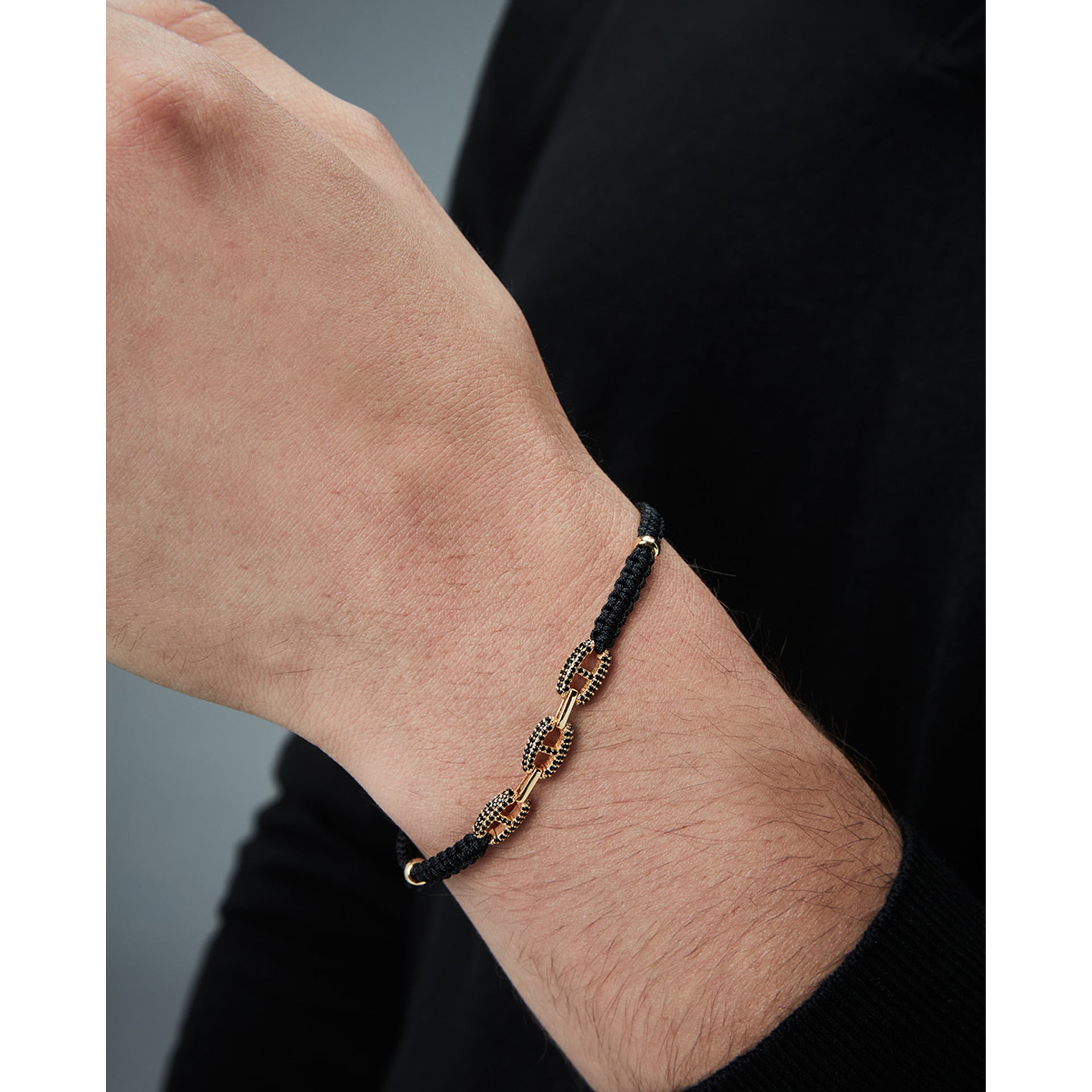 Gold-plated sterling silver bracelet with black cord