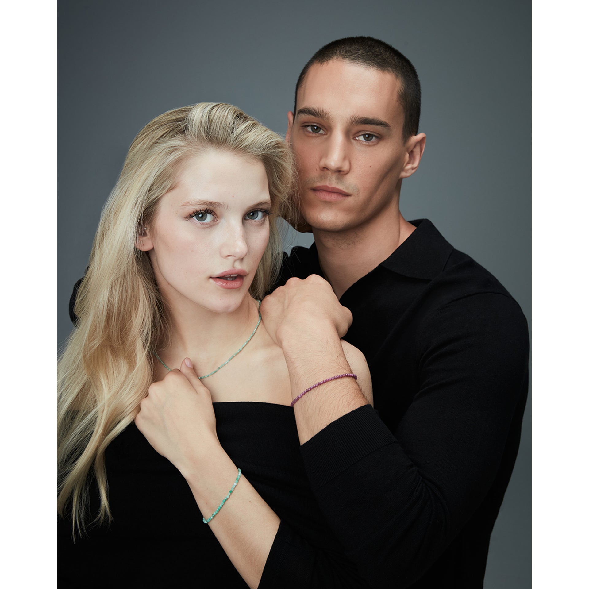 Men's black IP steel bracelet with natural emerald stones