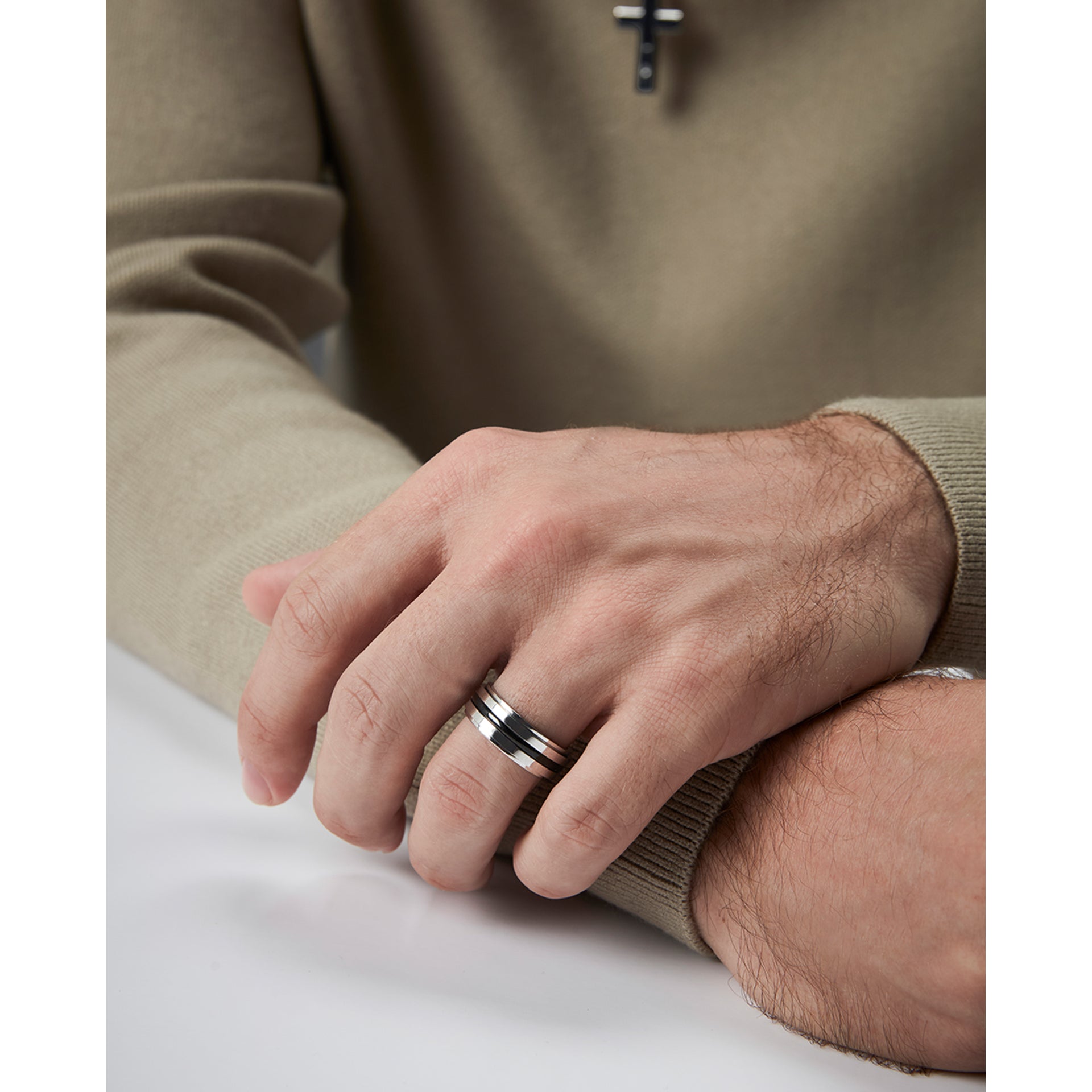 Anillo de hombre de acero cruces