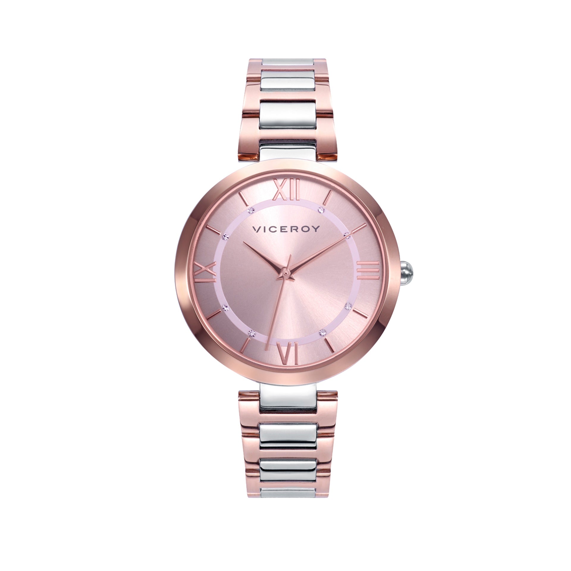 Chic rigid steel bracelet with gold Ip and pink Ip