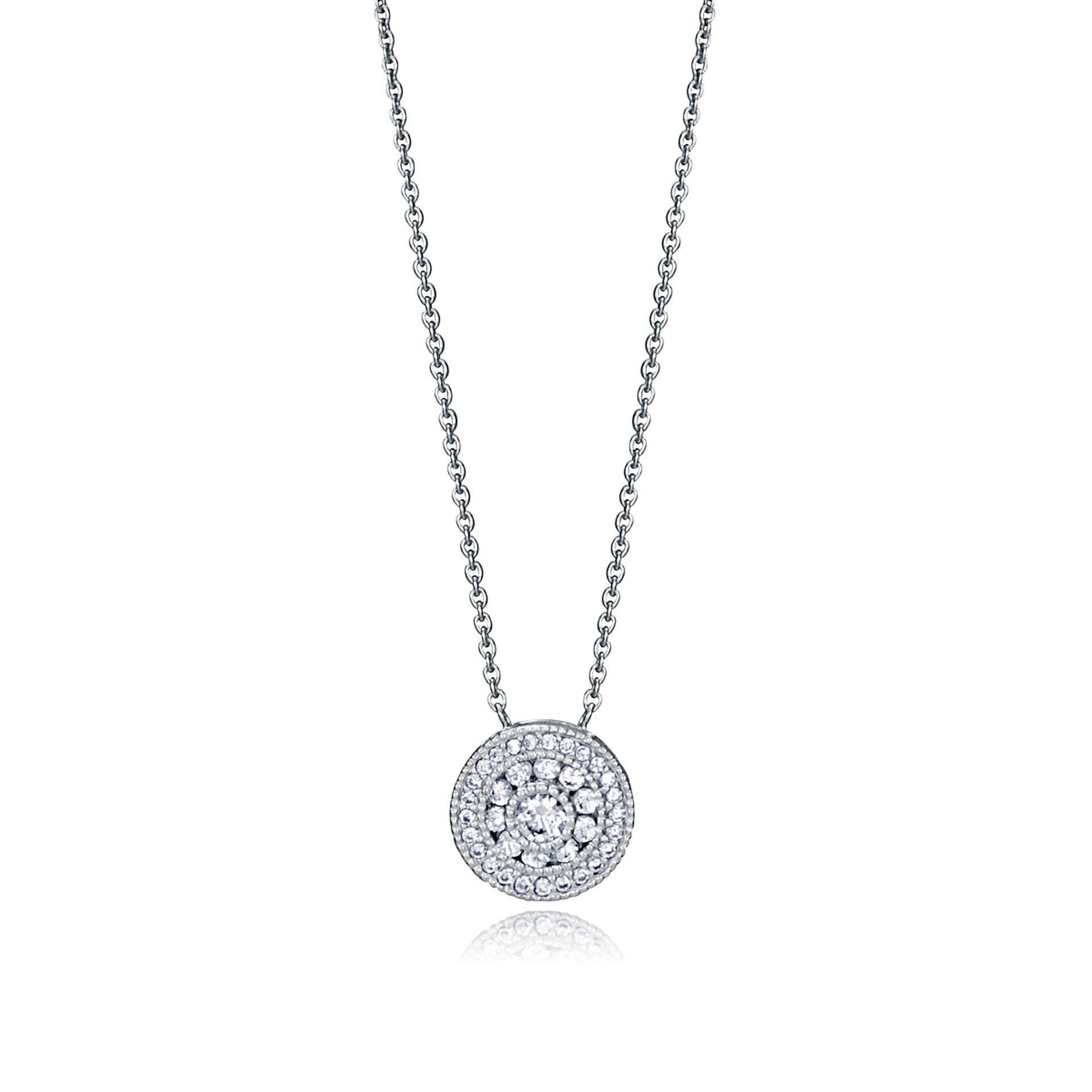 Collar Clásica de plata de ley en forma de disco con circonitas