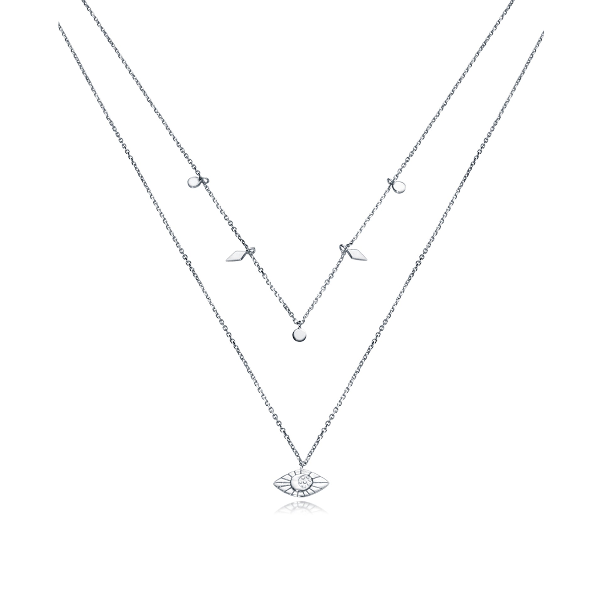 Sterling Silver Double Neclace With Eyes Lady Jew