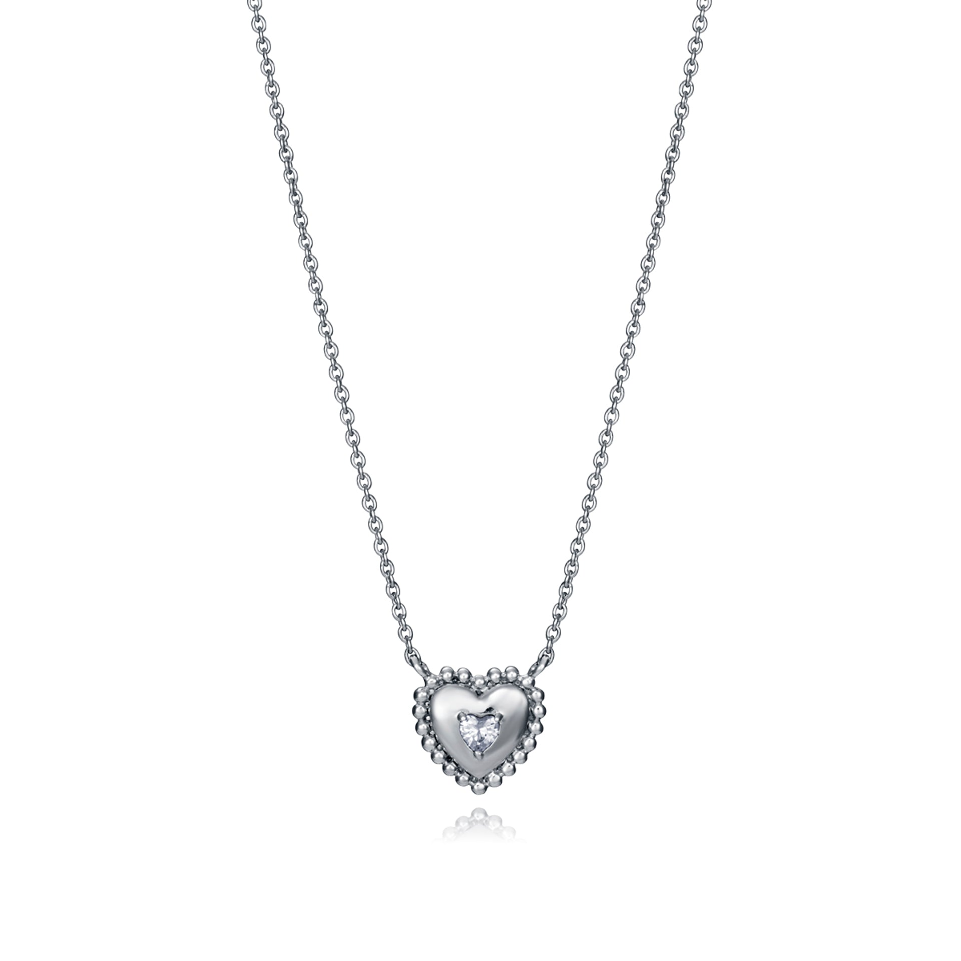 Collar Popular de plata de ley con colgante en forma de corazón y circonita central